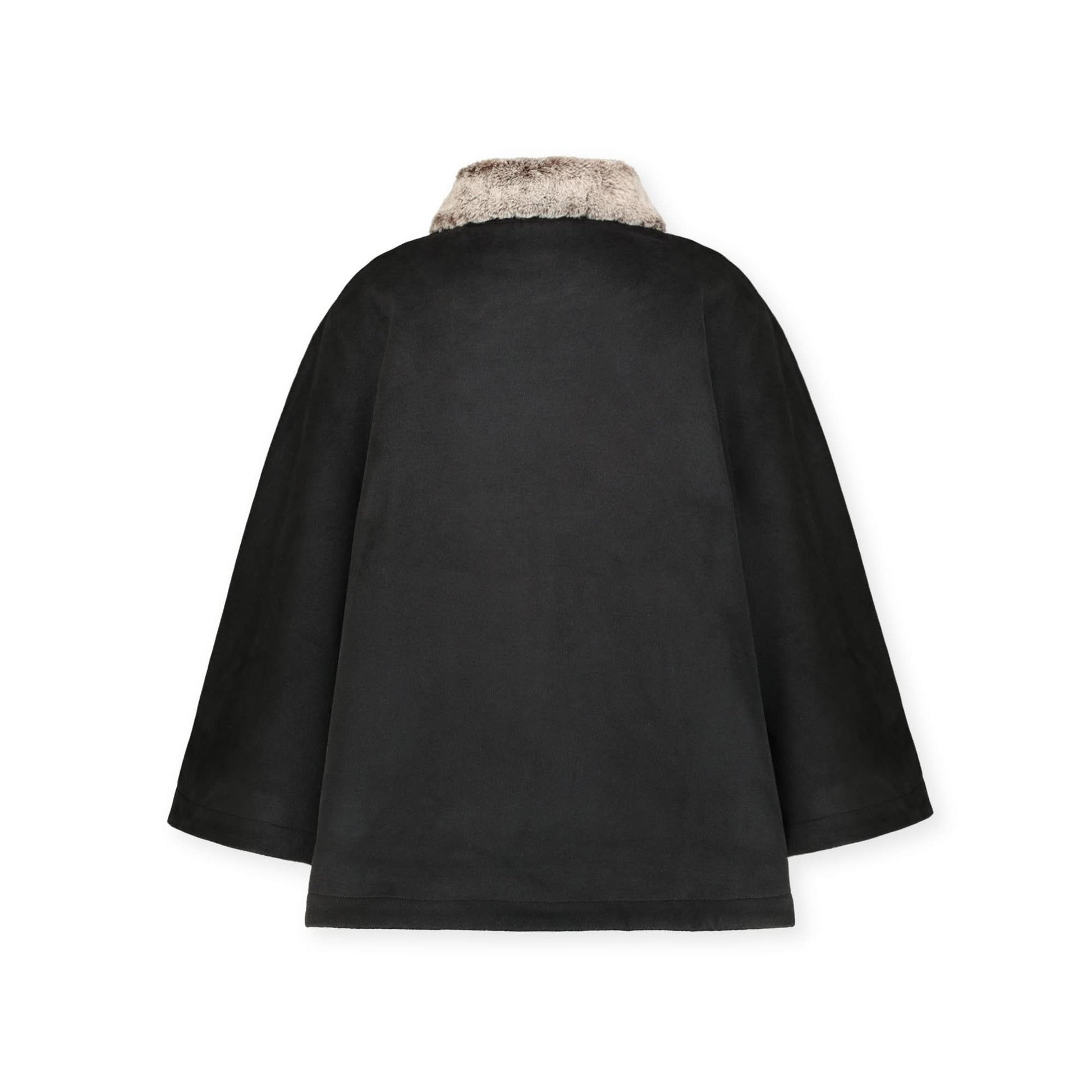 Button Front Cape with Faux Fur