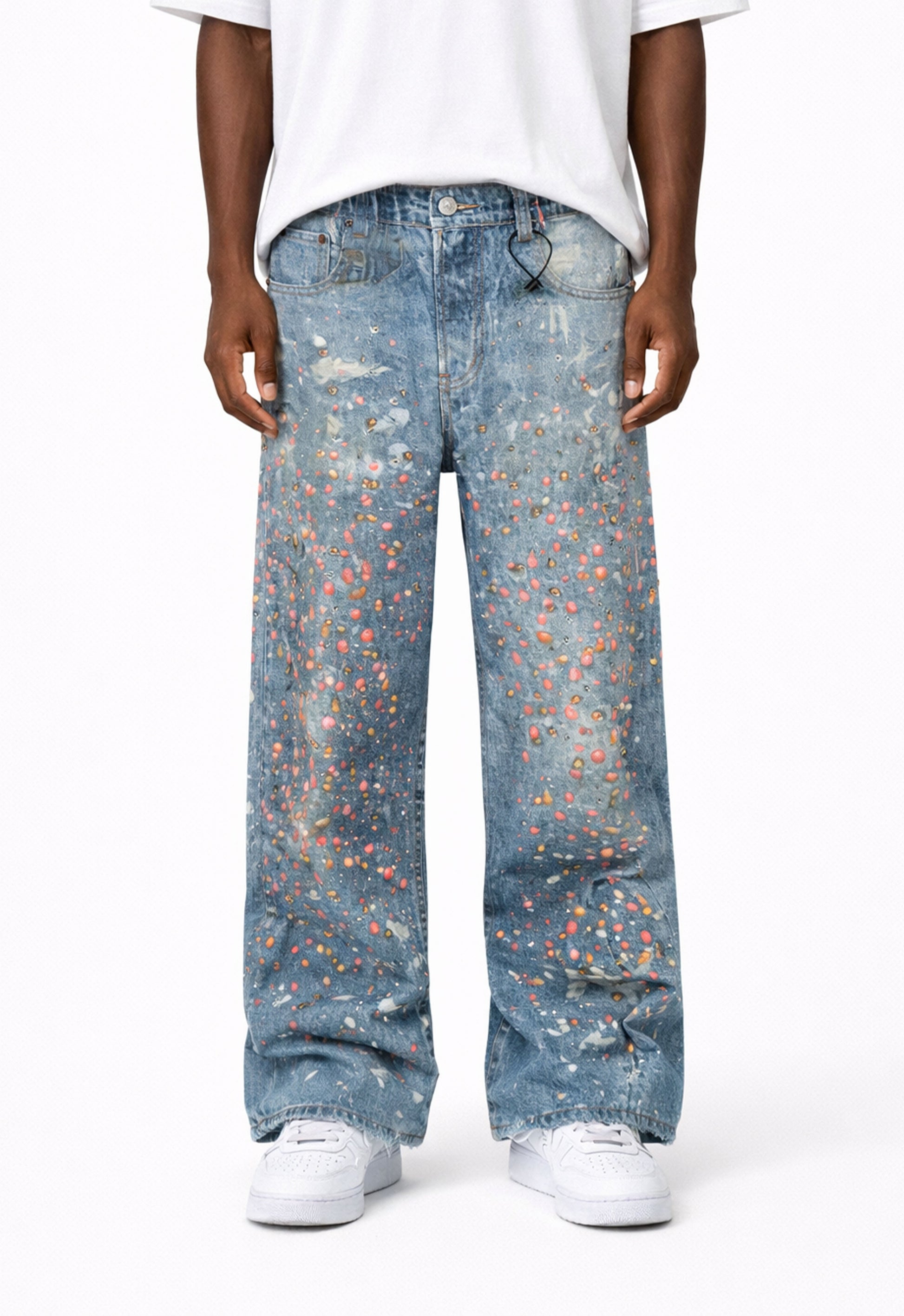 Our Candy Studded Denim are designed with a baggy fit, made with heavyweight Japanese Denim. gemstone detailing a vintage wash finish.