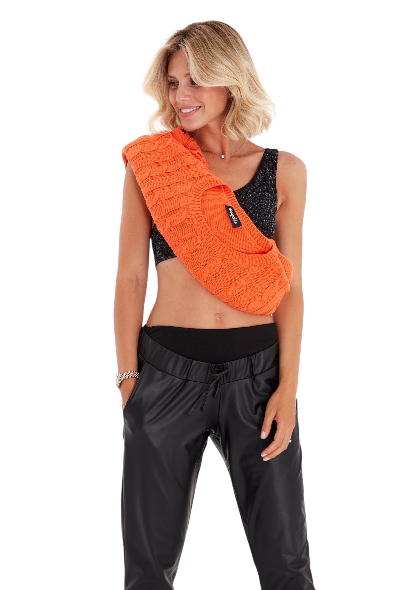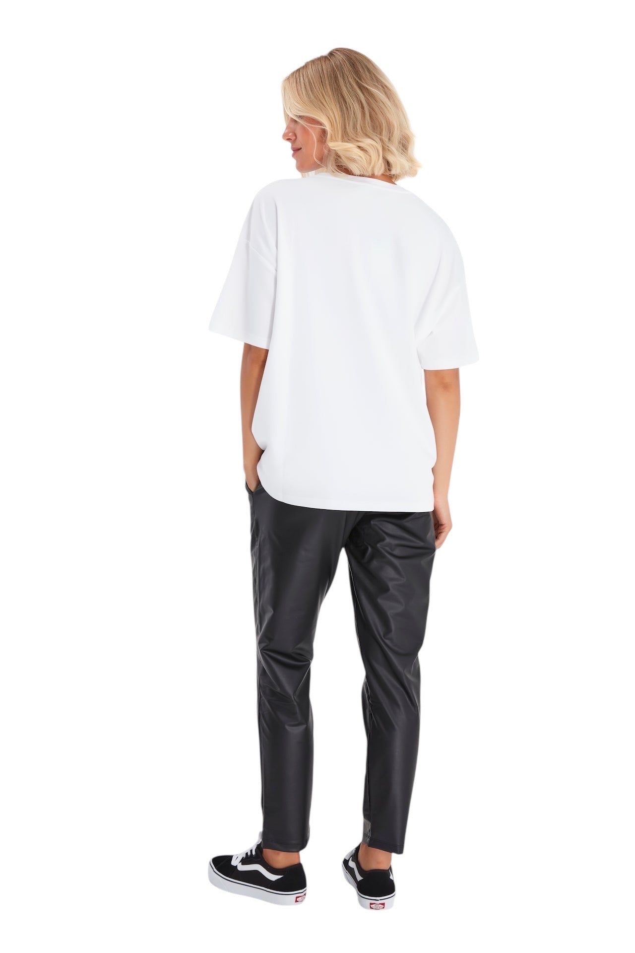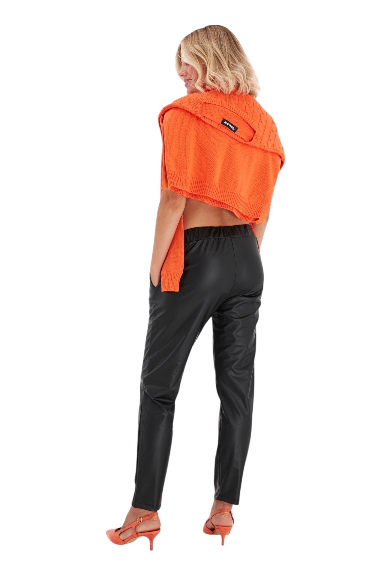 A wide foldover waistband keeps you cozy throughout every stage of pregnancy and postpartum in these roomy faux-leather pants.