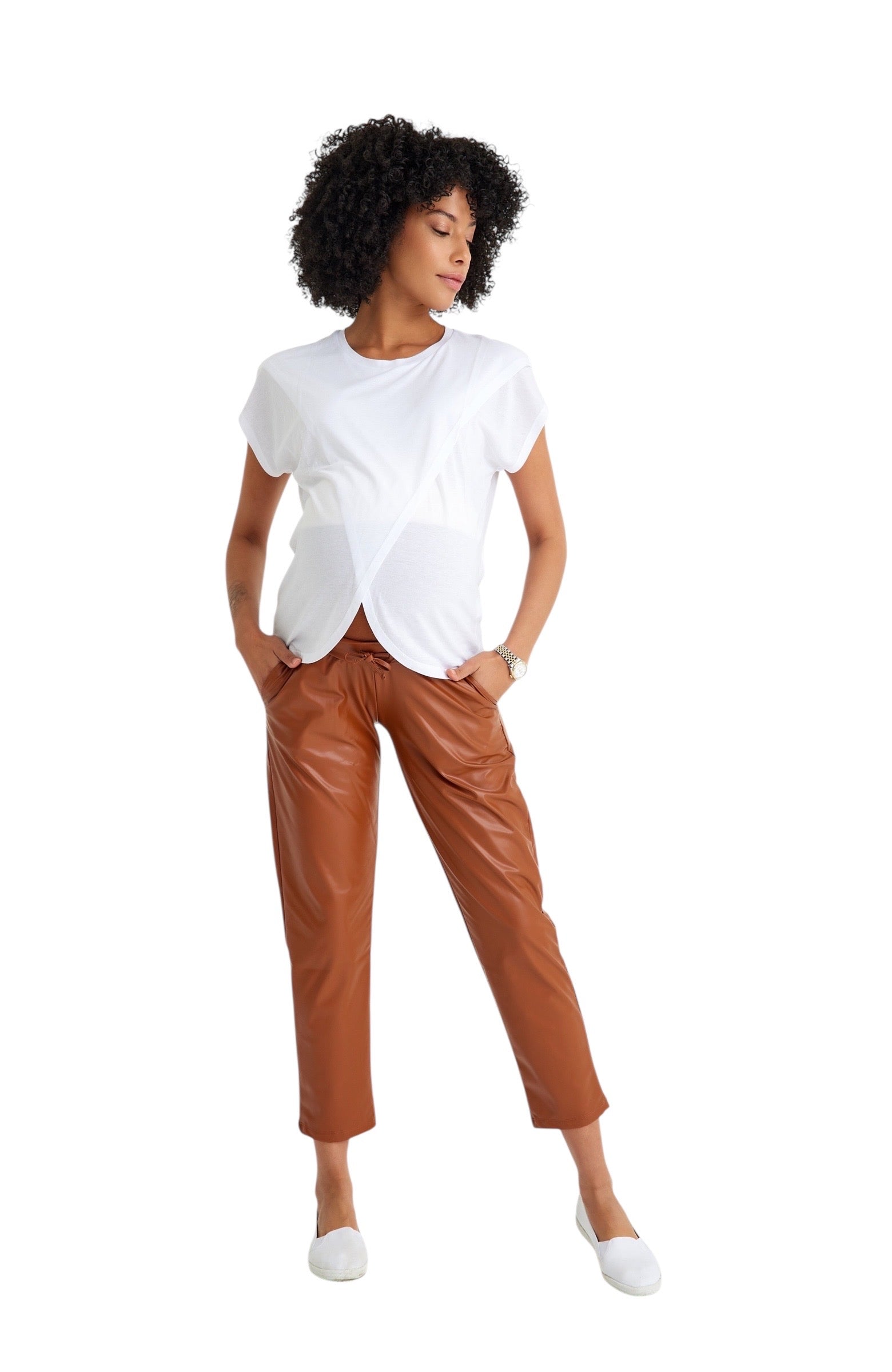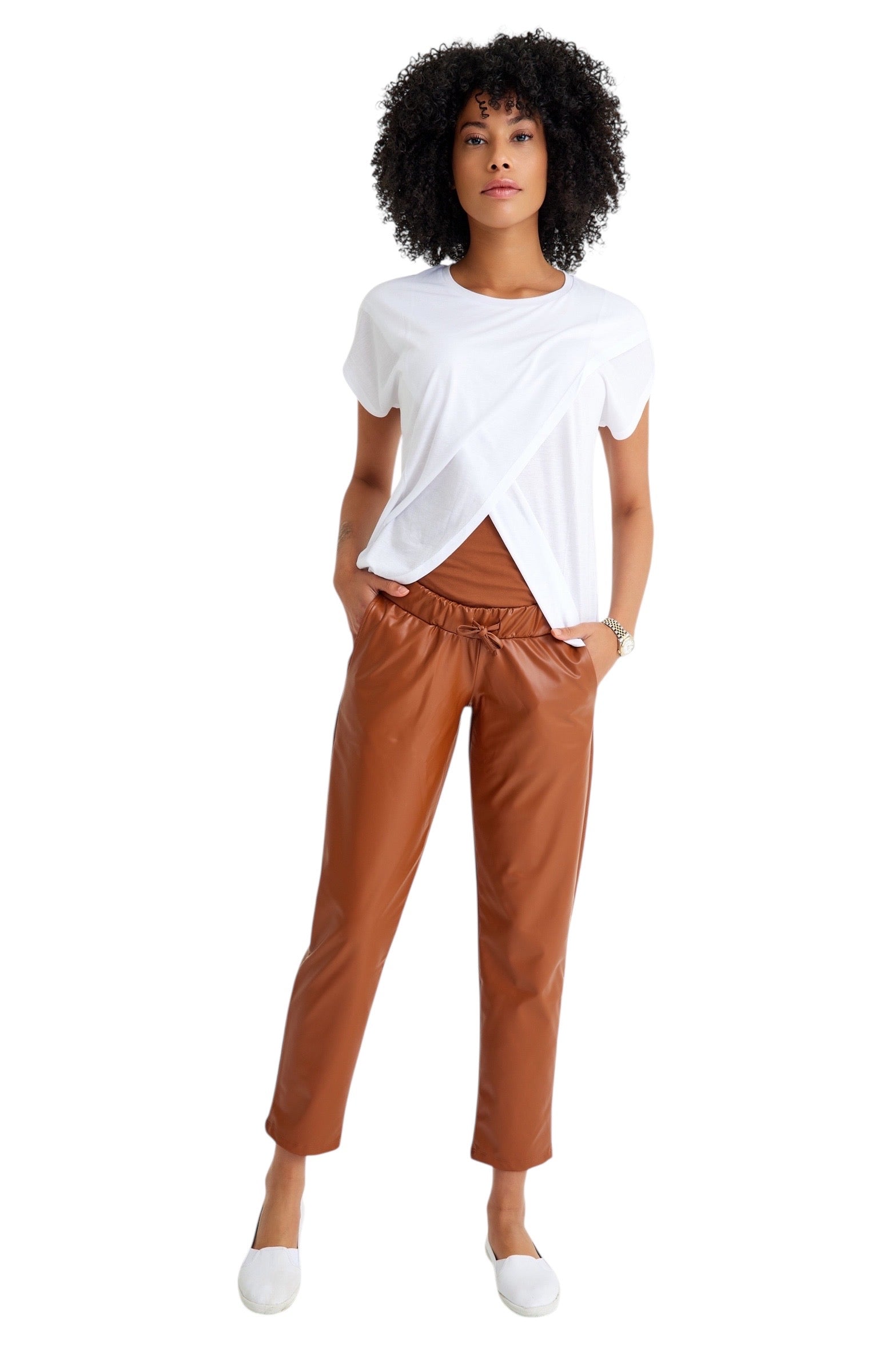 Comfy Cool Foldover Waistband Faux Leather Maternity Jogger Pants
