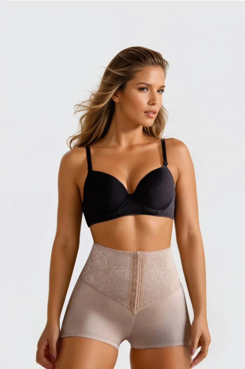 Panty girdle shapewear. Provides firm control to tummy and hips. Girdle and shaper brief with front hook-and-eye closure to smooth lower abdomen. Beautiful Valencian lace design. Lifts rear. Cotton Gusset. Imported cotton, rubber latex, spandex and nylon. This product contains latex. If you are allergic or highly sensitive to latex, this product may not be suitable for you. Product Code: 506