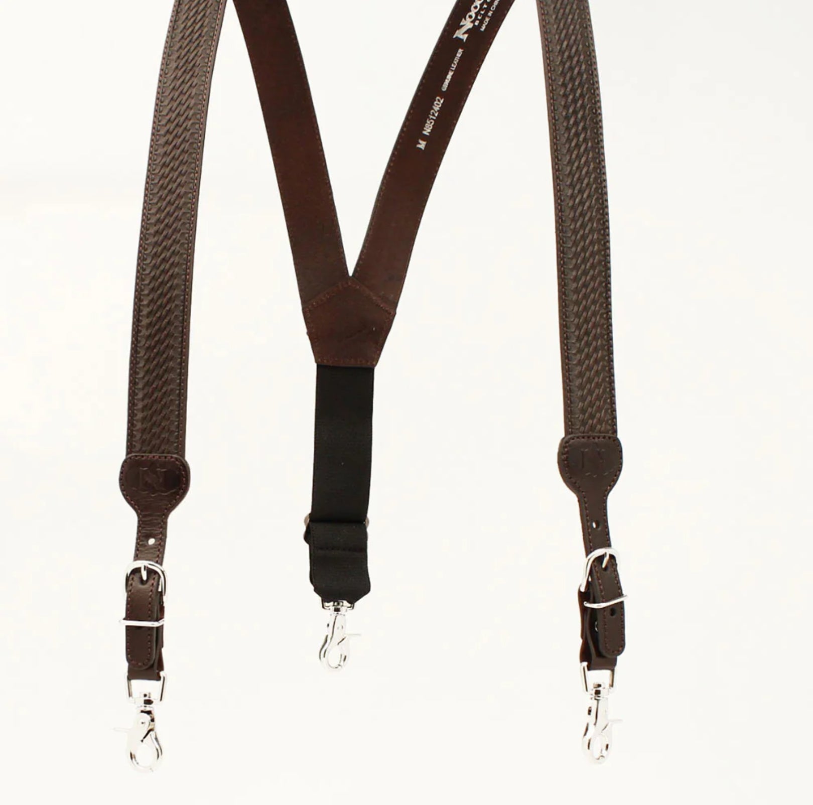 Nocona dark brown leather gallus Basket weave with silver hardware