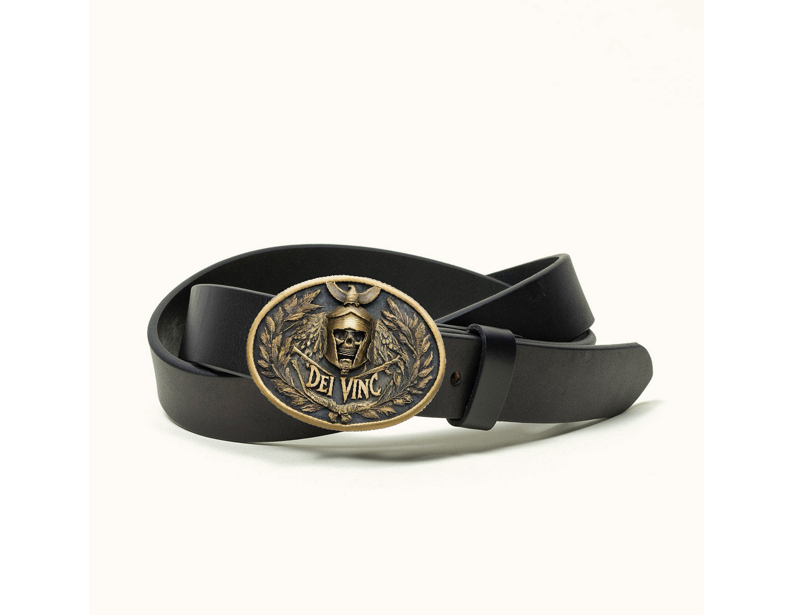 The Dei Vinc Warrior Belt is a sleek and durable leather belt with a bold bronze buckle. Inspired by ancient warriors, this belt is perfect for adding a touch of strength and style to any outfit. Crafted with high-quality materials, it offers both functionality and fashion. Elevate your wardrobe with the Dei Vinc Warrior Belt.