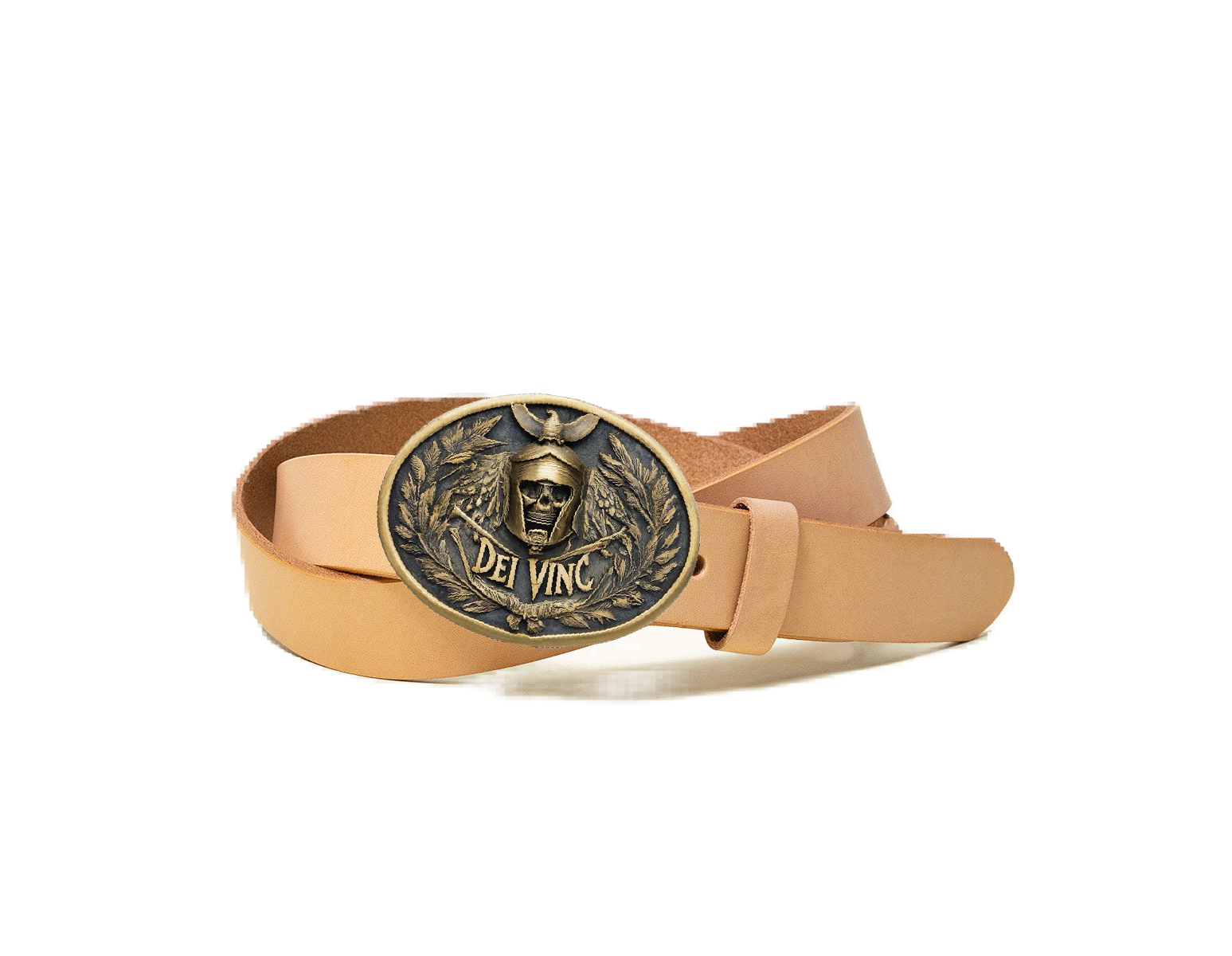 The Dei Vinc Warrior Belt is a sleek and durable leather belt with a bold bronze buckle. Inspired by ancient warriors, this belt is perfect for adding a touch of strength and style to any outfit. Crafted with high-quality materials, it offers both functionality and fashion. Elevate your wardrobe with the Dei Vinc Warrior Belt.