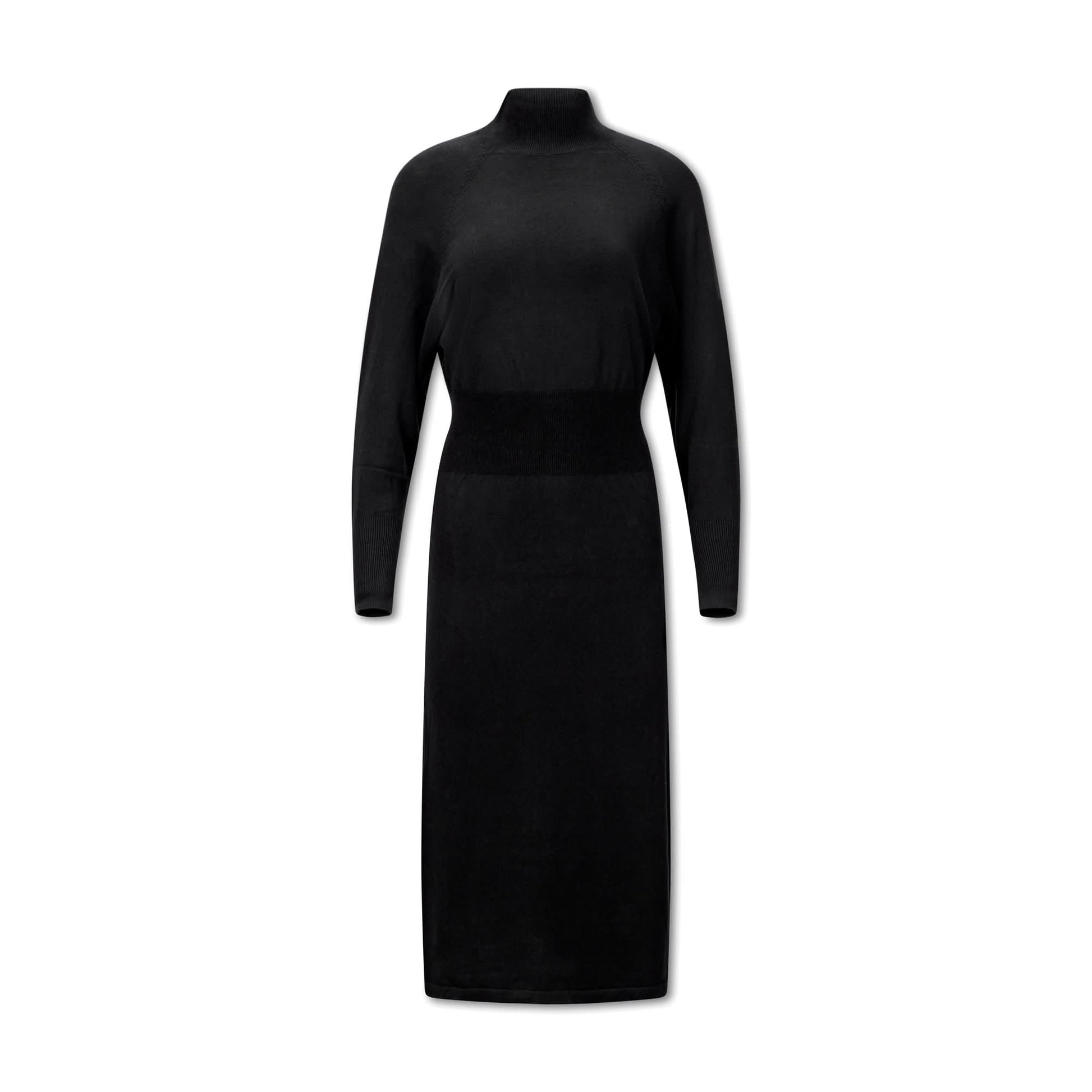 Effortlessly chic is the best way to describe our gorgeous mock neck sweater dress cut from soft organic cotton. Features dolman sleeves for a cozy fit, while a wide and stretchy rib knit waistband allows you to customize the fit perfectly to your body. This is the little black (sweater) dress you didn't know you needed.