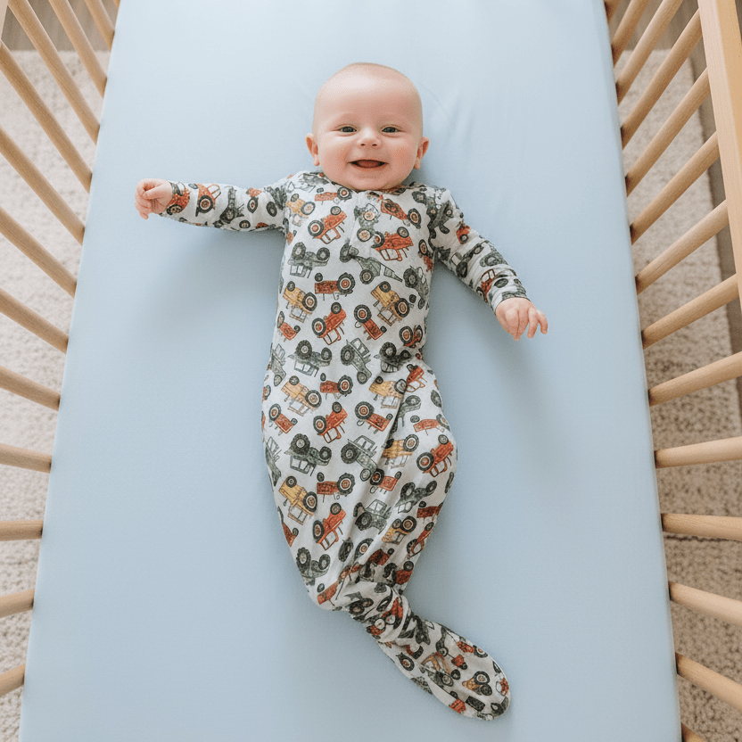 Our knotted gown is perfect for that special homecoming outfit. A close fit design for comfort and security. Finished with a deep front placket and knot closure for super easy diaper changes!