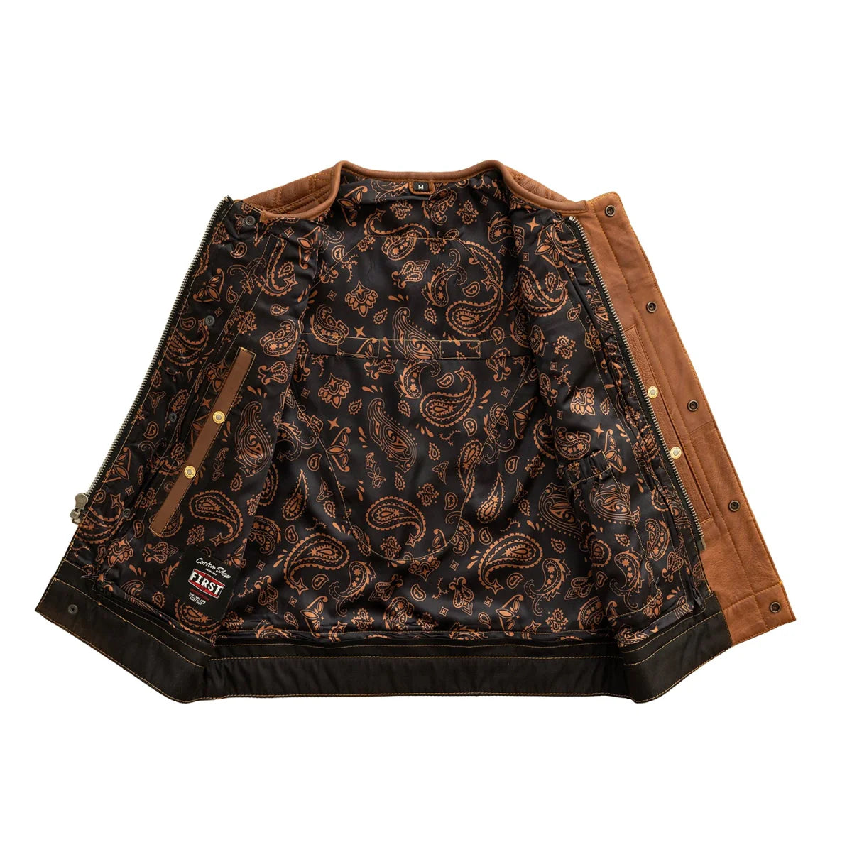 The Dust Devil is an all leather club style vest, that fits just like our No Rival and other standard club vests. It features a rolled collar, cropped center zipper for comfort while sitting on the bike, and also has an easy access zip so you can easily add patches or embroideries. Don't forget about our huge conceal carry pockets!