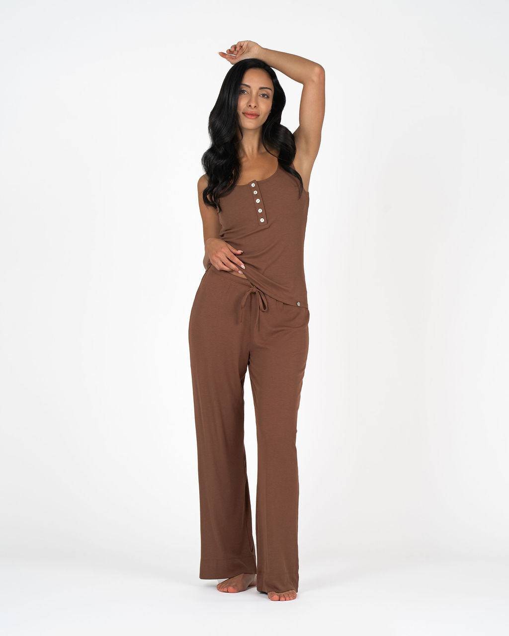 Our buttery-soft silk-blend set designed for effortless comfort. The scoop tank and relaxed pant create an easy, elevated silhouette perfect for lounging, sleeping, traveling, or styling for everyday wear. It's breathable and irresistibly soft — the set you’ll reach for again and again.
