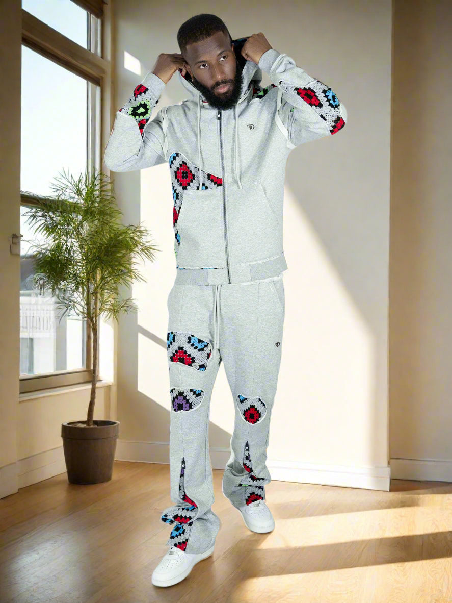 F5709 Castello Crochet Stacked Jogger Set - Gray