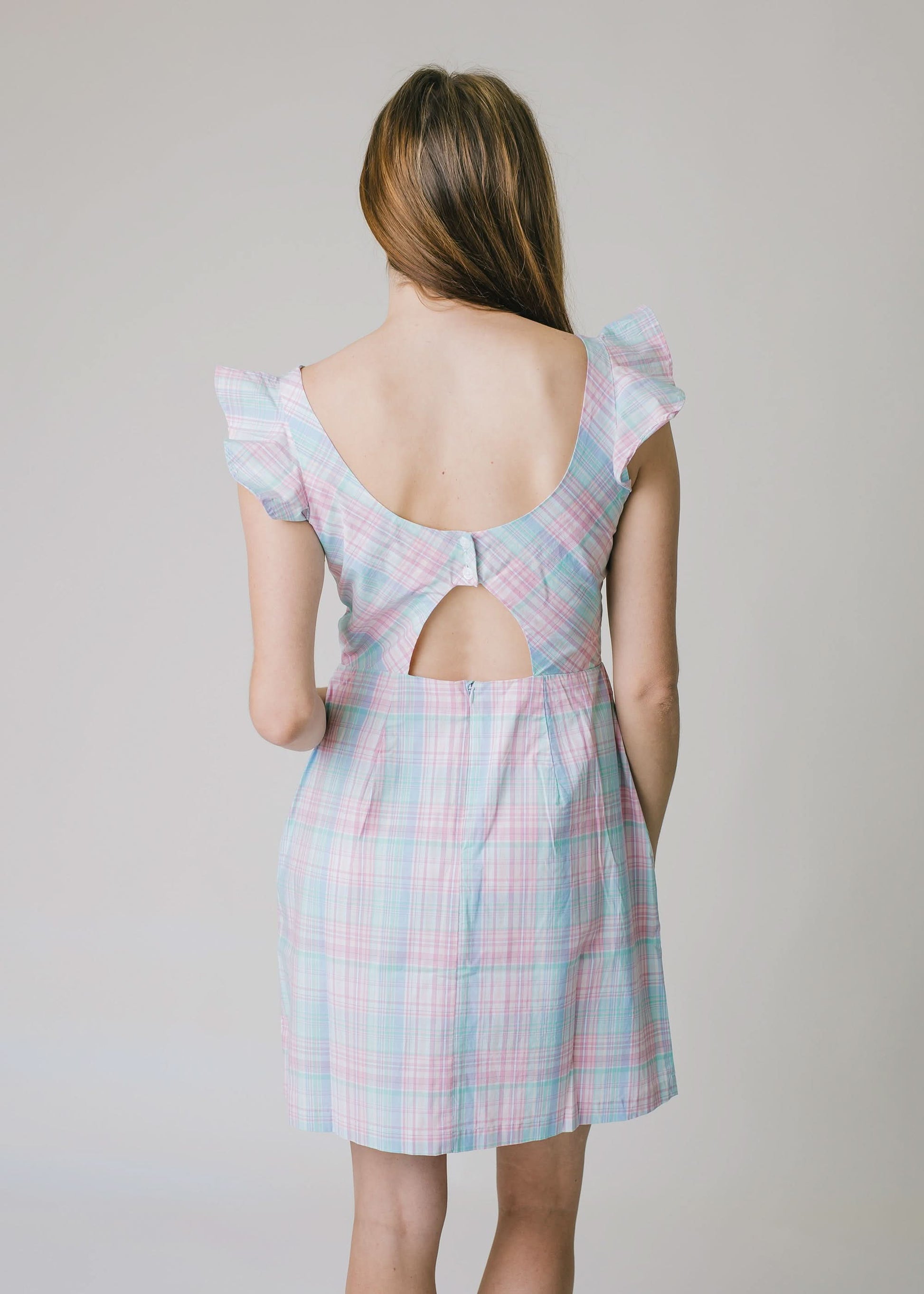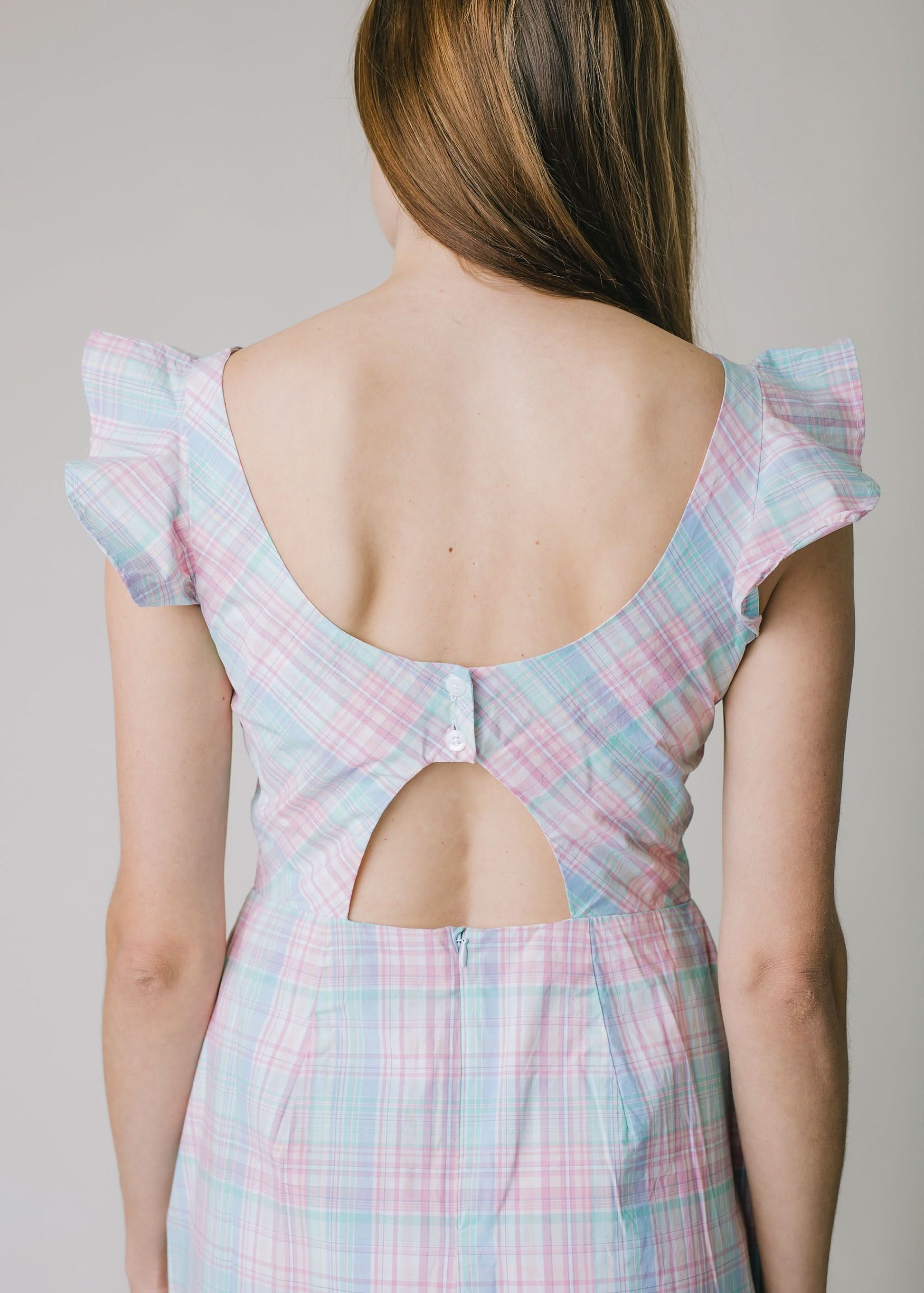 In a flattering organic cotton and linen blend, our stylish sheath dress is topped with airy flutter sleeves for a bit of fun. Features a flattering cut, scoop neckline with flutter sleeves, open back detail with buttons, and hidden zipper at the back waist. And did we mention, it has pockets?