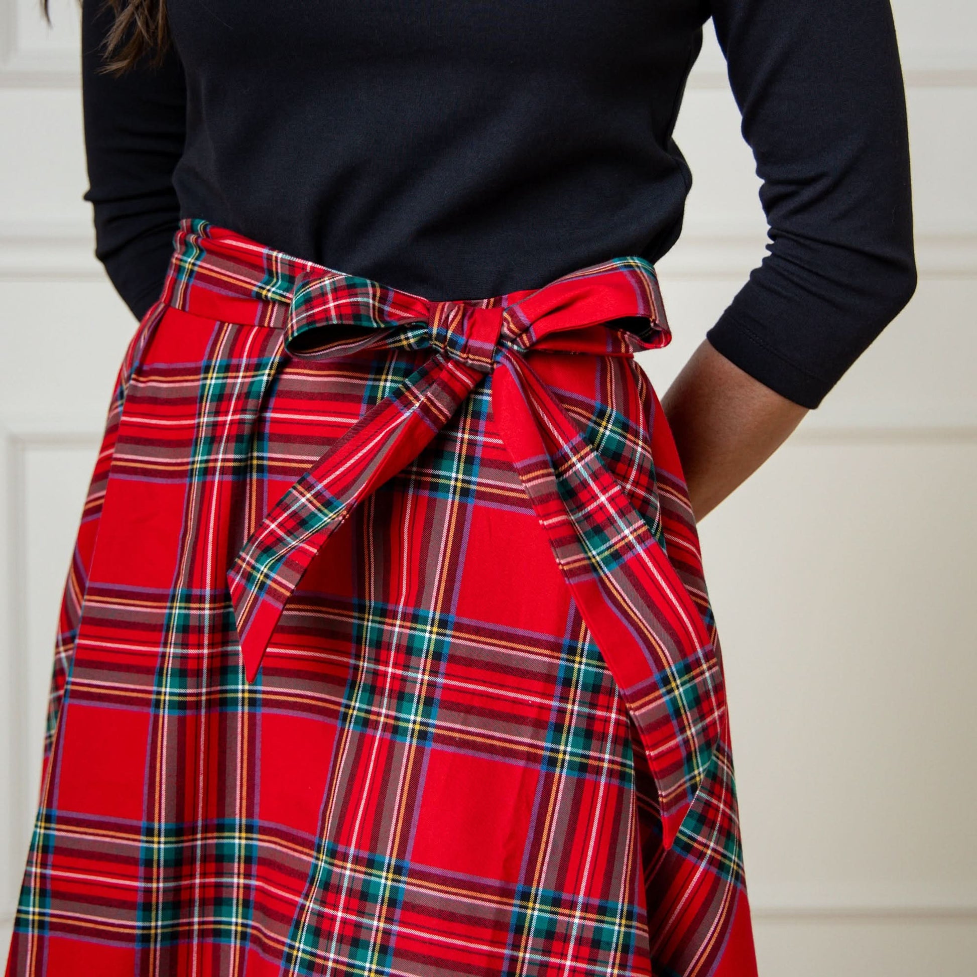 - Bodice is a forgiving and flattering knit ponte, paired with a woven twill skirt and waist sash that drapes beautifully on the body.