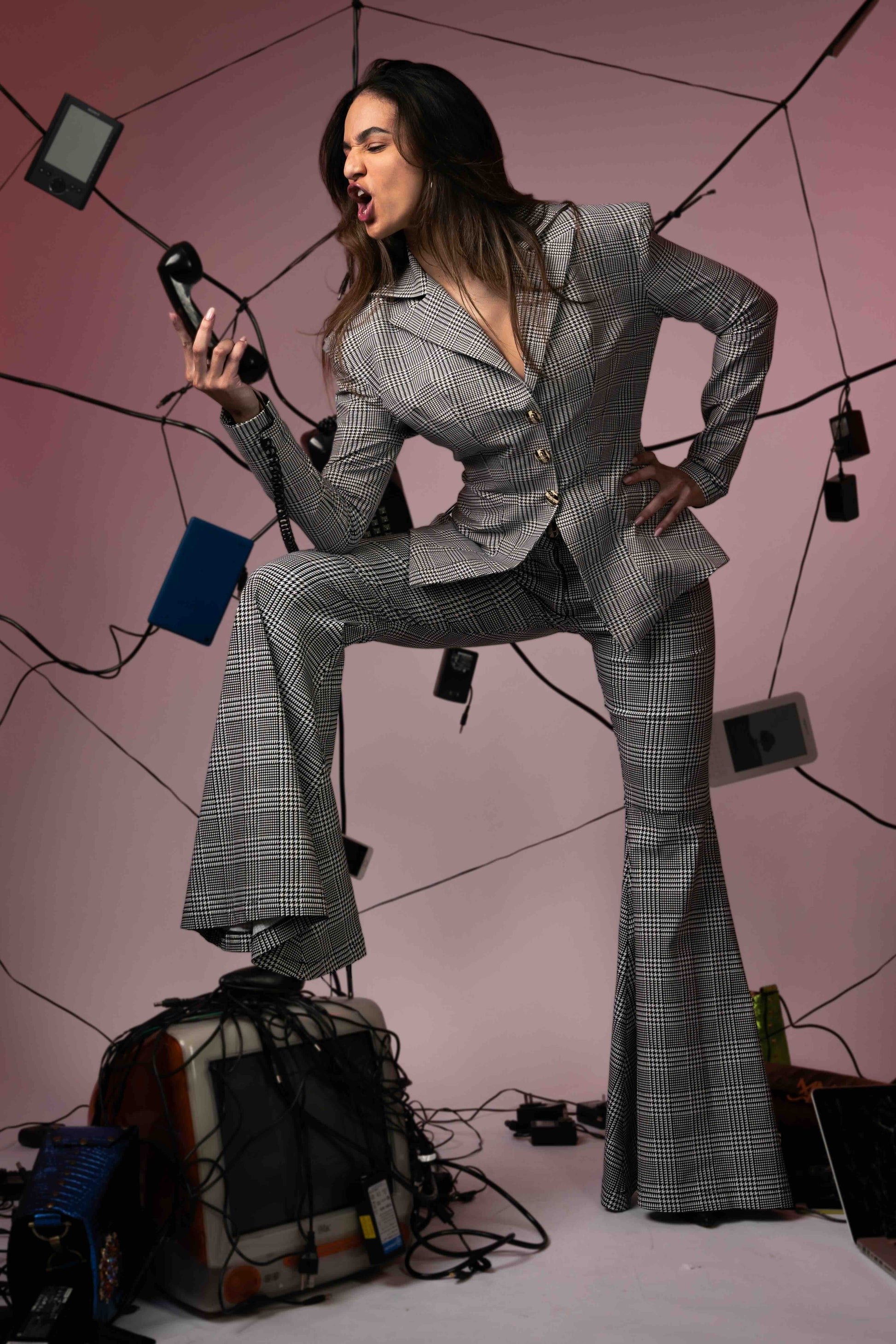 Grey plaid print