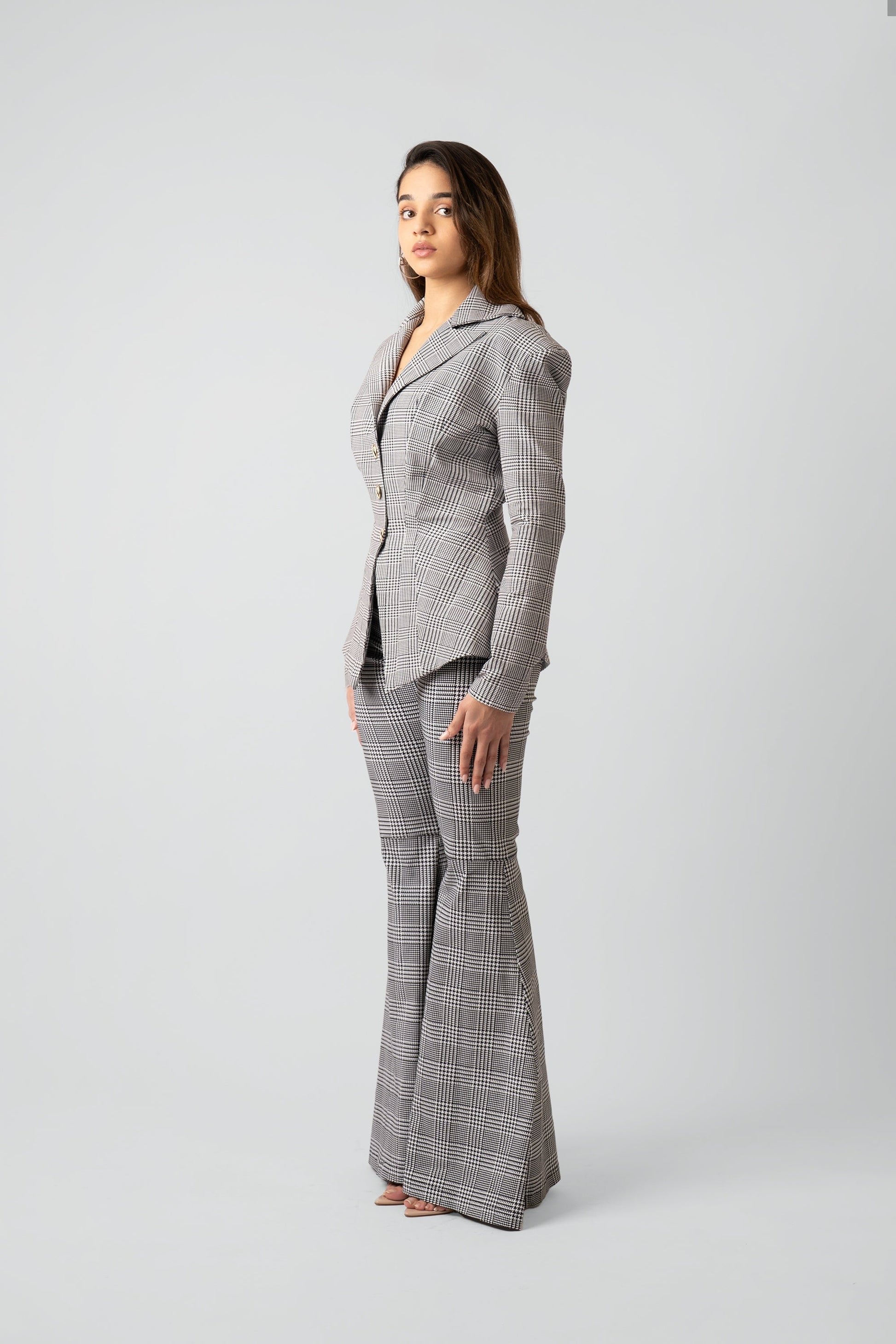 The Geneviève Tailored Pants are a modern take on elevated tailoring, designed to elongate the leg and move with effortless sophistication. Crafted in refined grey plaid, these bell-bottom trousers feature a streamlined, figure-flattering silhouette that balances structure with ease. Pair with the matching Geneviève Tailored Blazer for a cohesive, polished ensemble perfect for workwear, evening events, or editorial-worthy styling where confident presence matters.