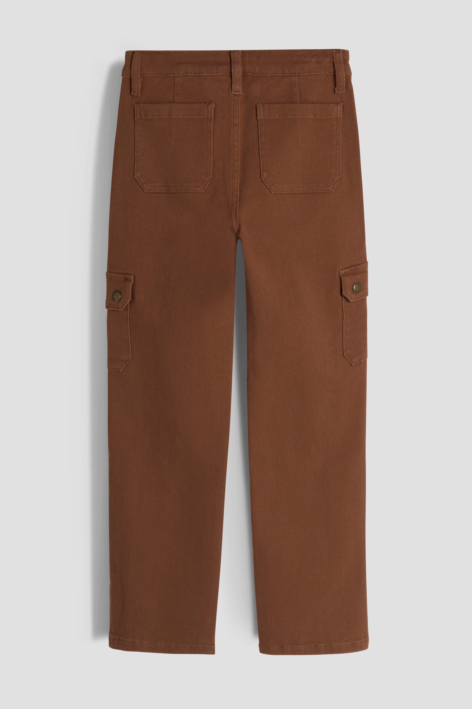 Elevate your everyday look with our Girls Selena High Rise Straight Leg Pork Chop With Cargo Pockets. These pants feature a flattering high rise fit and functional cargo pockets, perfect for storing your essentials in a trendy fashion. Step out in style and confidence with this must-have wardrobe staple.