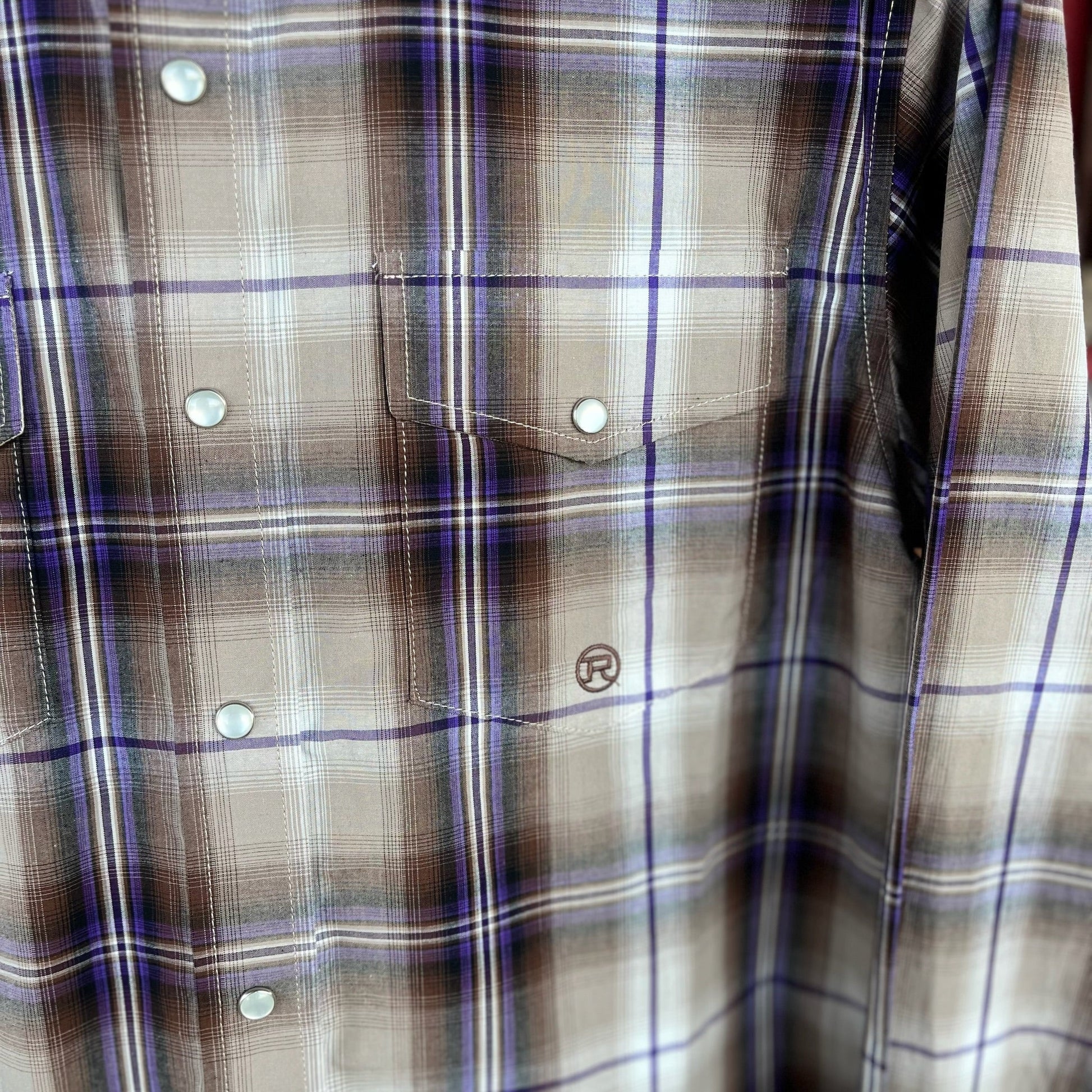 Boys grey and purple plaid Roper long sleeve button up with pearl snaps
