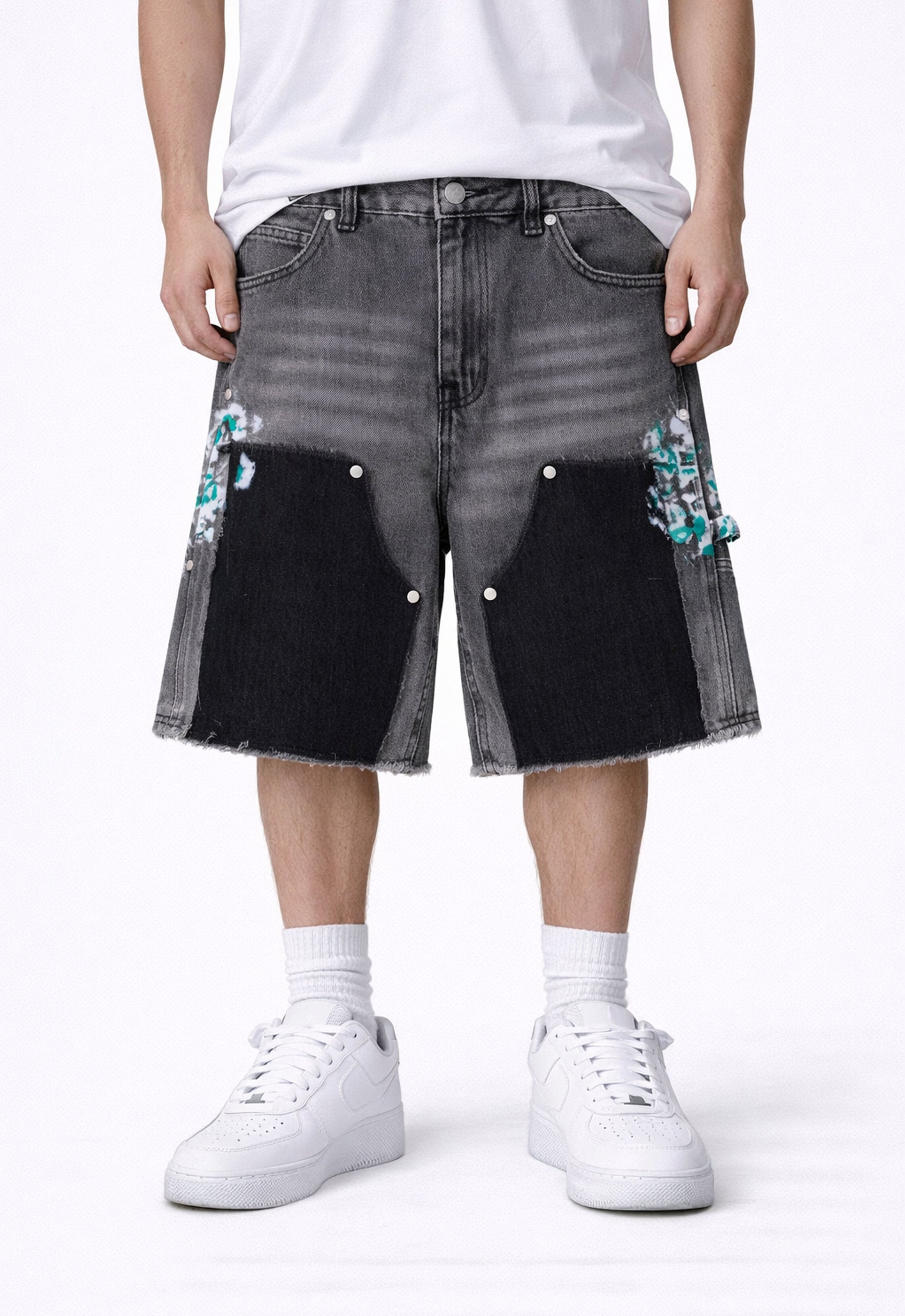 GREY SPLIT PAINTERS SHORTS