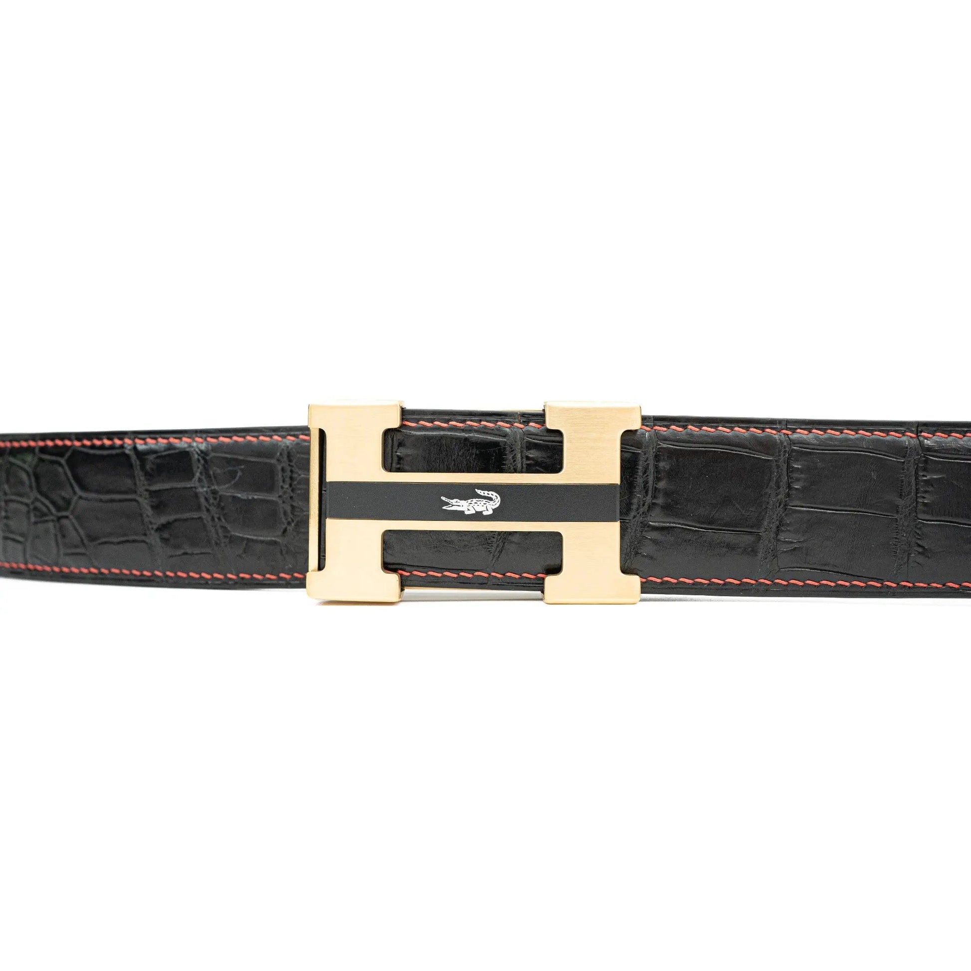 This alligator leather belt is highly popular for its outstanding tactile strength. This alligator leather belt is one of the strongest leather belts you can find in your wardrobe. Thanks to the naturally appearing oils in alligator leather, these keep the belt from cracking even in extreme weather conditions too.