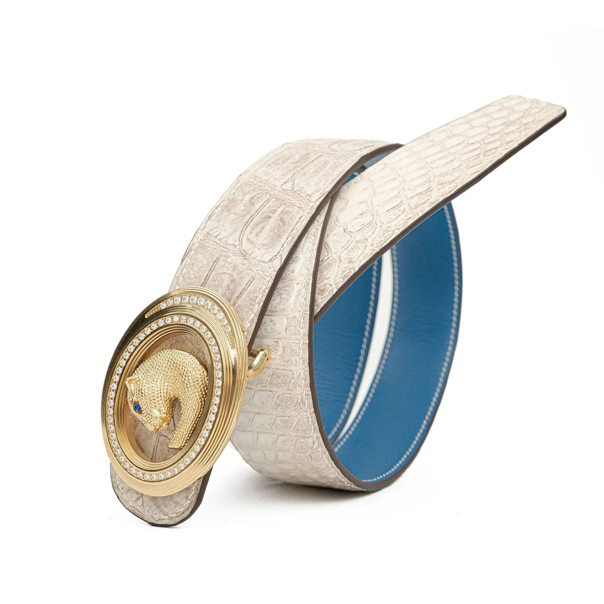 This alligator leather belt is highly popular for its outstanding tactile strength. This alligator leather belt is one of the strongest leather belts you can find in your wardrobe. Thanks to the naturally appearing oils in alligator leather, these keep the belt from cracking even in extreme weather conditions too.