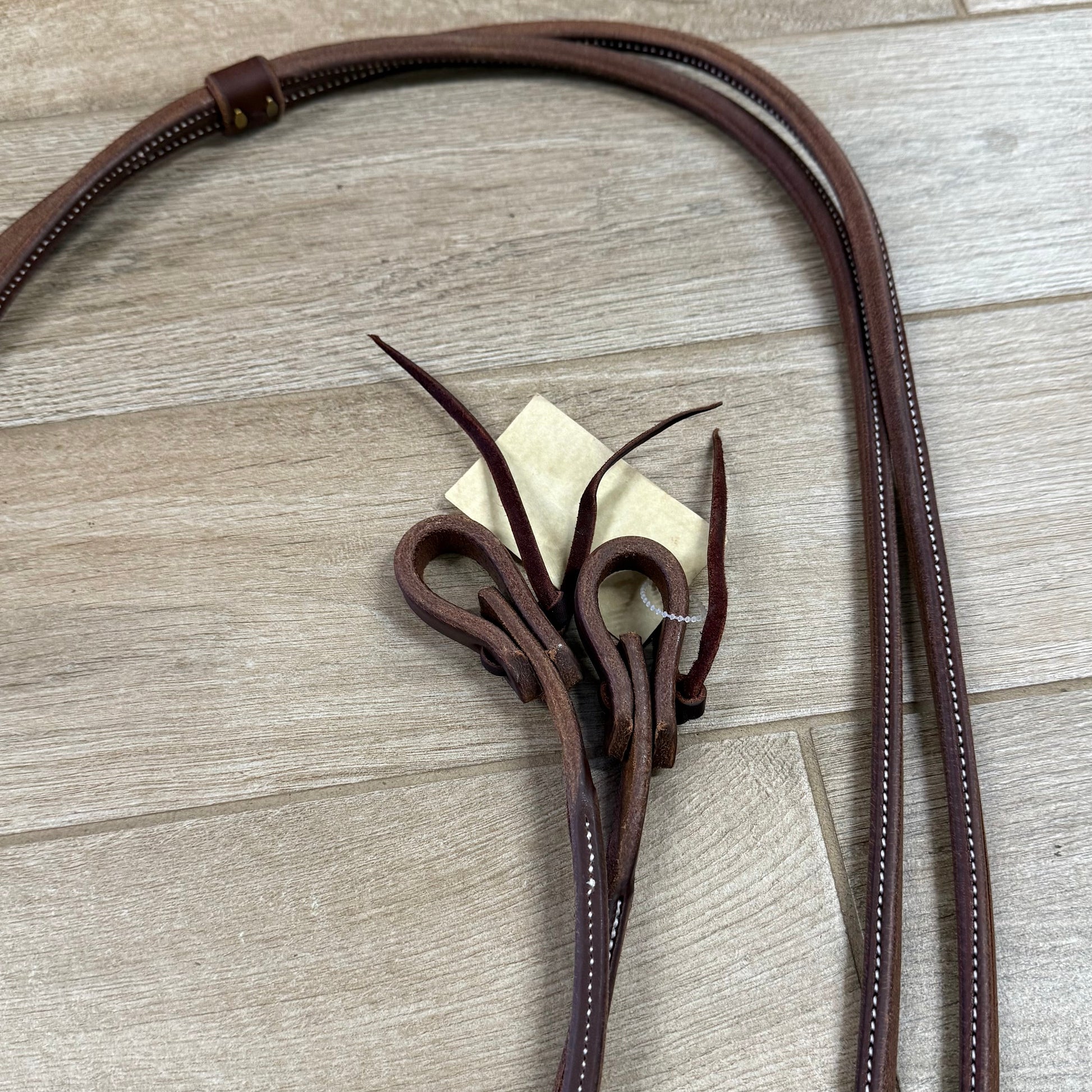 Hot oil heavy tail round split rein from Jerry Beagley with water loop ends made in the USA