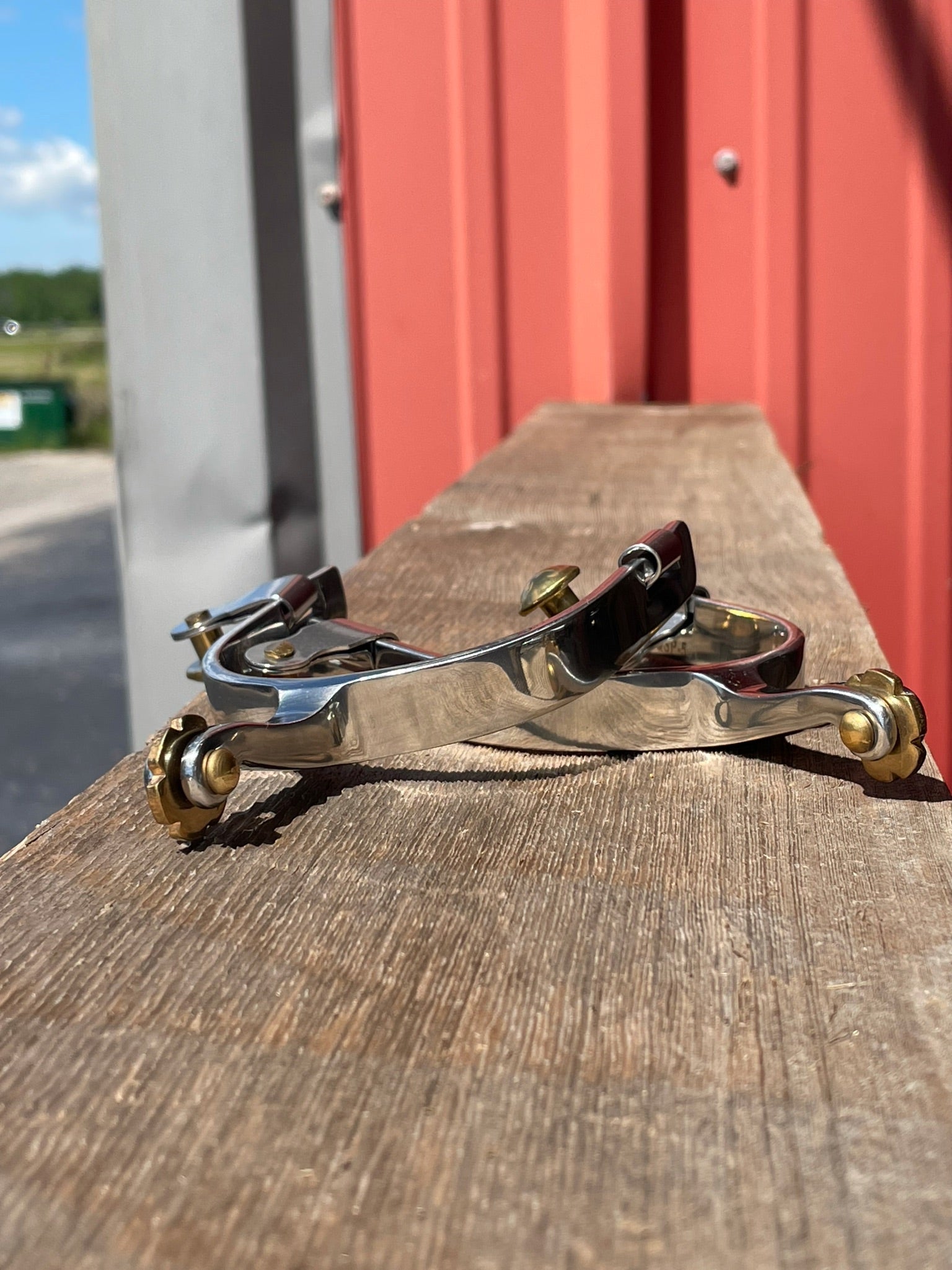 Horseman spur shank 2" band 3/4 rowel 6pt. Regular sliver spur with brass rowel. Made by Professional's Choice