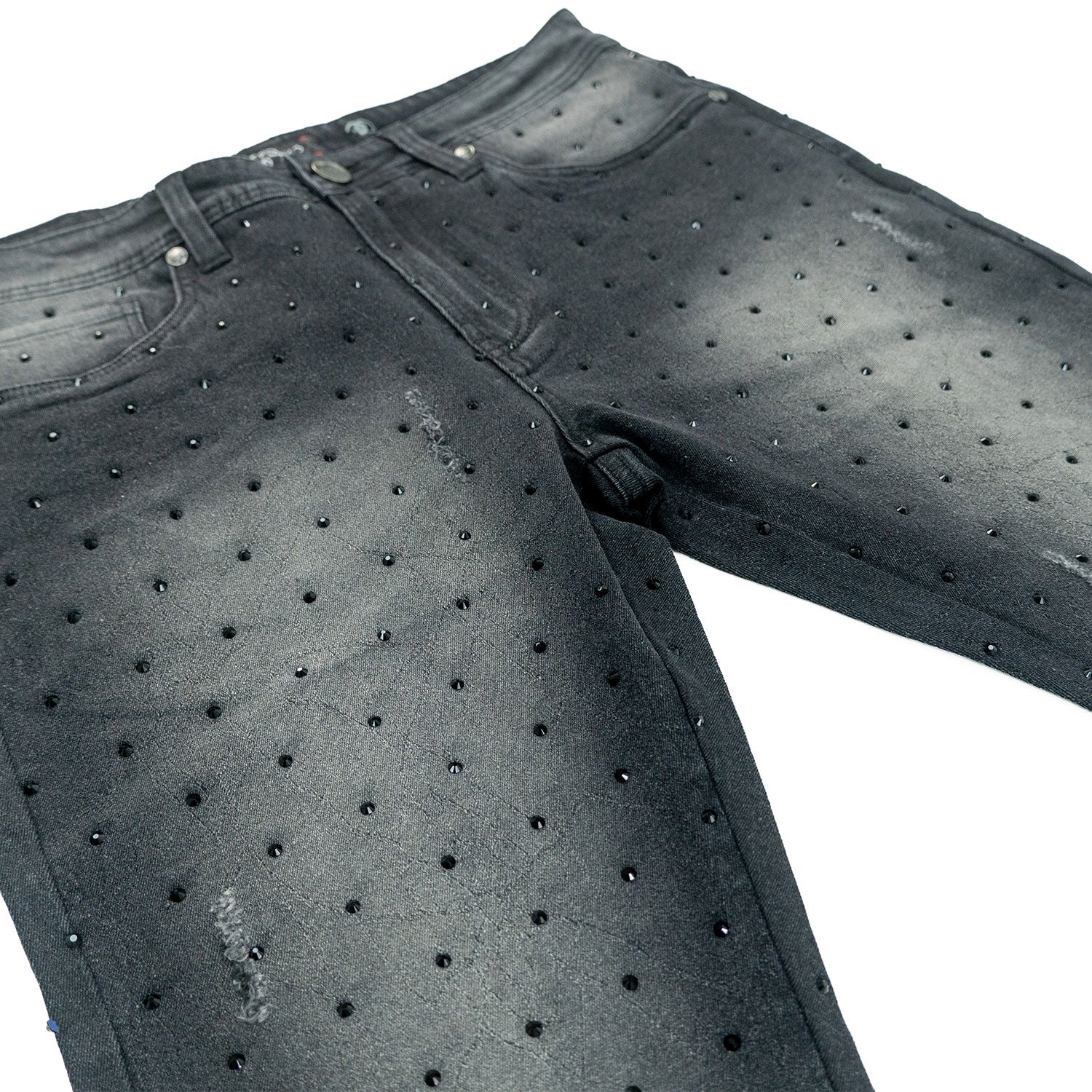 What truly sets the Amoto jeans apart is their dazzling rhinestone embellishment. Whether accenting seams, tracing pockets, or forming custom patterns or logos, these shimmering stones catch the light for a statement-making finish with a luxe edge.
