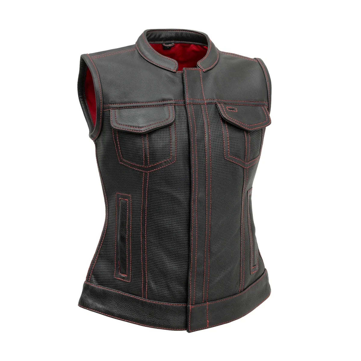 FIL027PERF | Jessica Perforated Women's Club Style Motorcycle Leather Vest