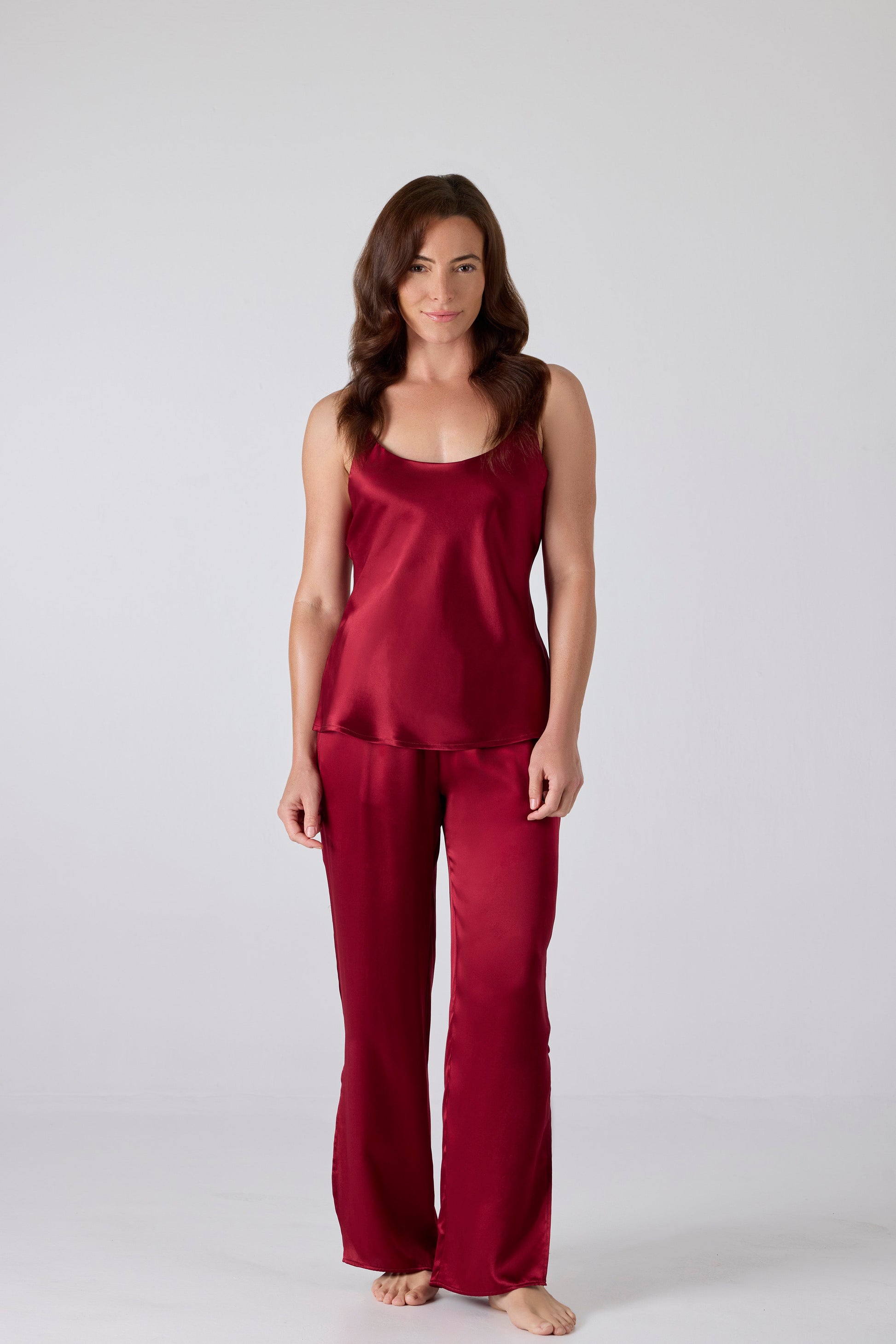 Refined and alluring, this tank top and high-slit pant set drapes like butter, combining effortless elegance with a hint of edge.