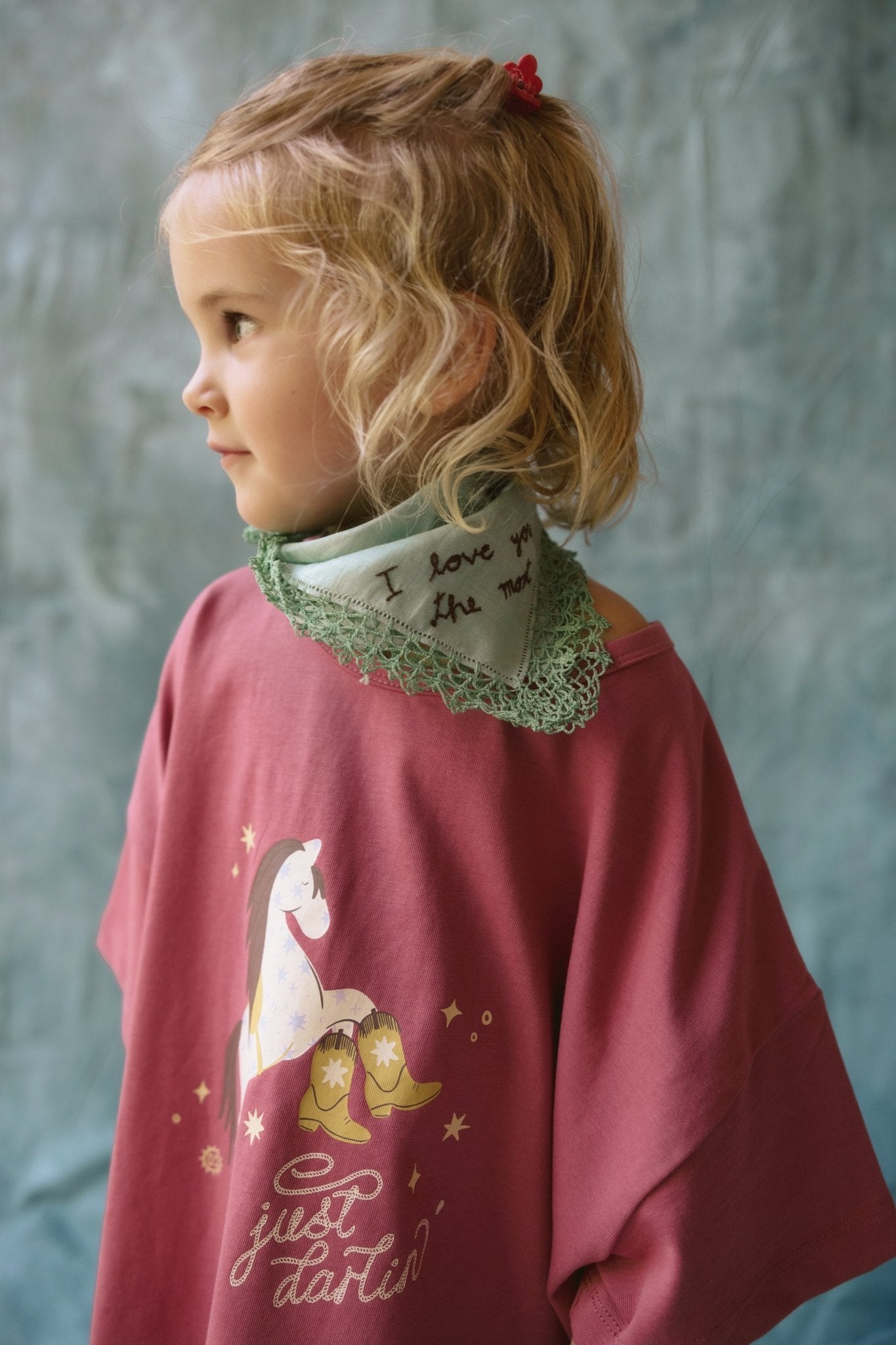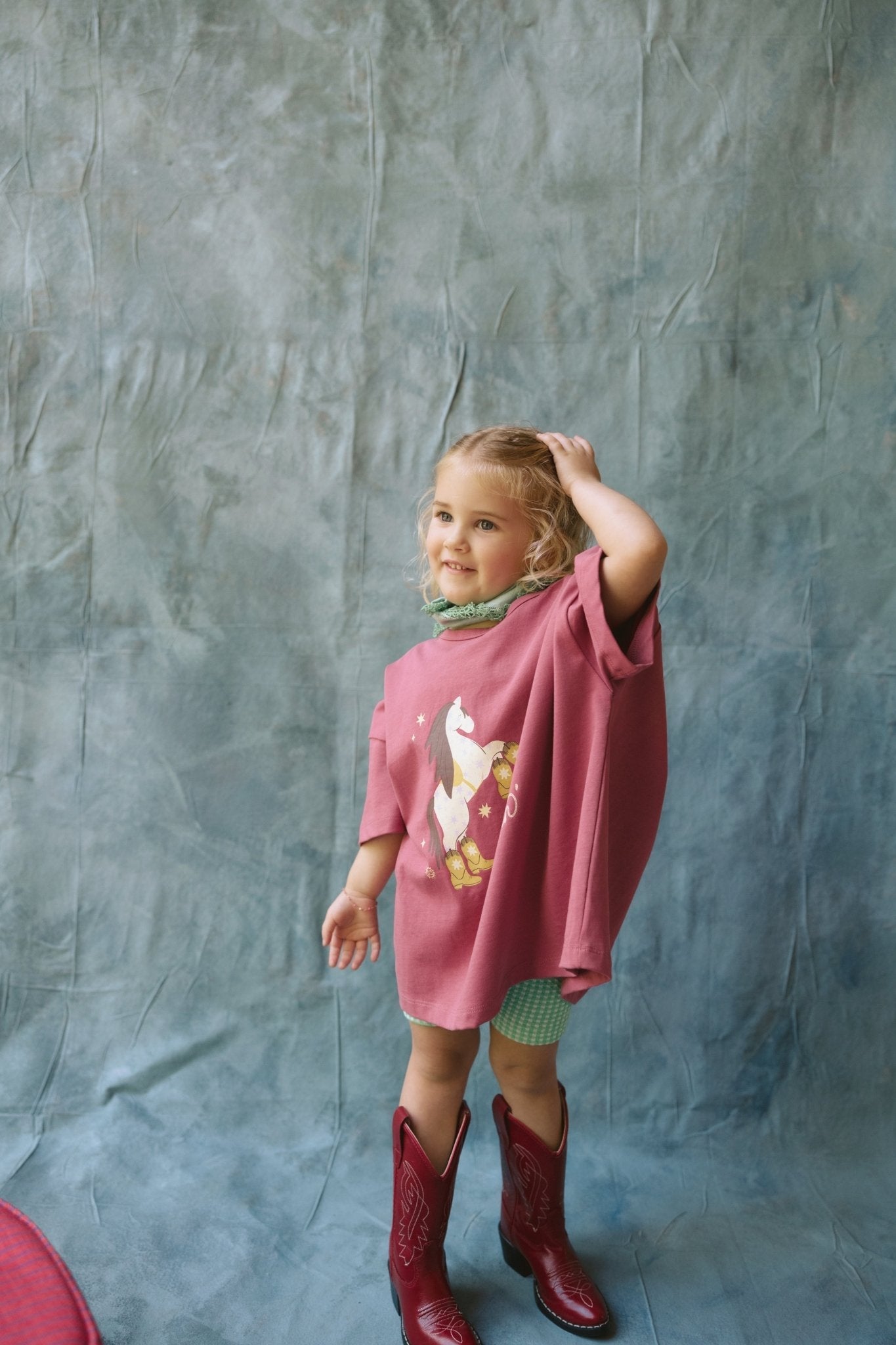 This unisex Toddler T-shirt in a soft mauve shade features our playful “Just Darlin’” graphic — complete with a horse in cowboy boots (because why not). It adds the perfect blend of charm and personality to your little one’s everyday style.