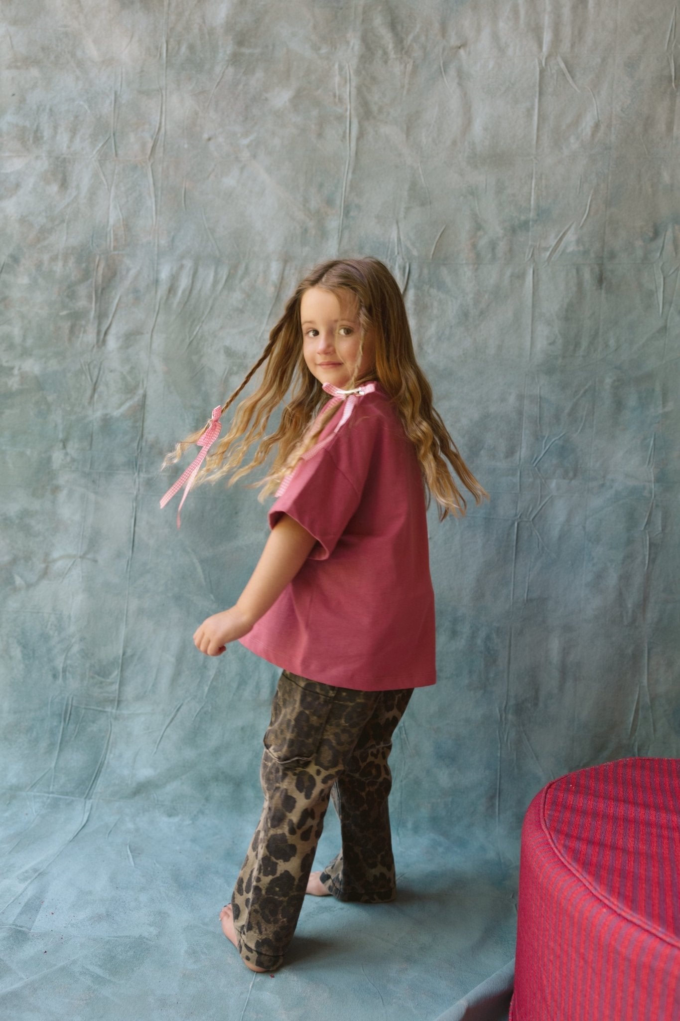 Everly (brunette + leopard jeans) is 4 & 41" and wearing 3–5T
