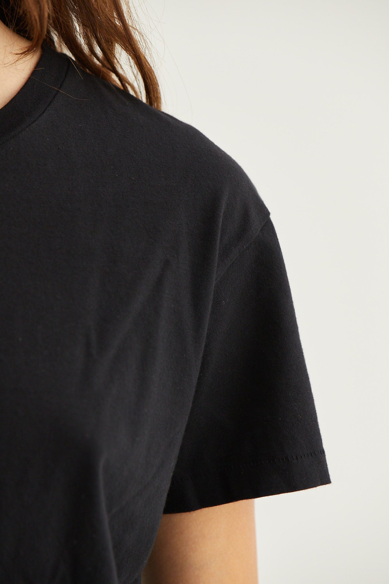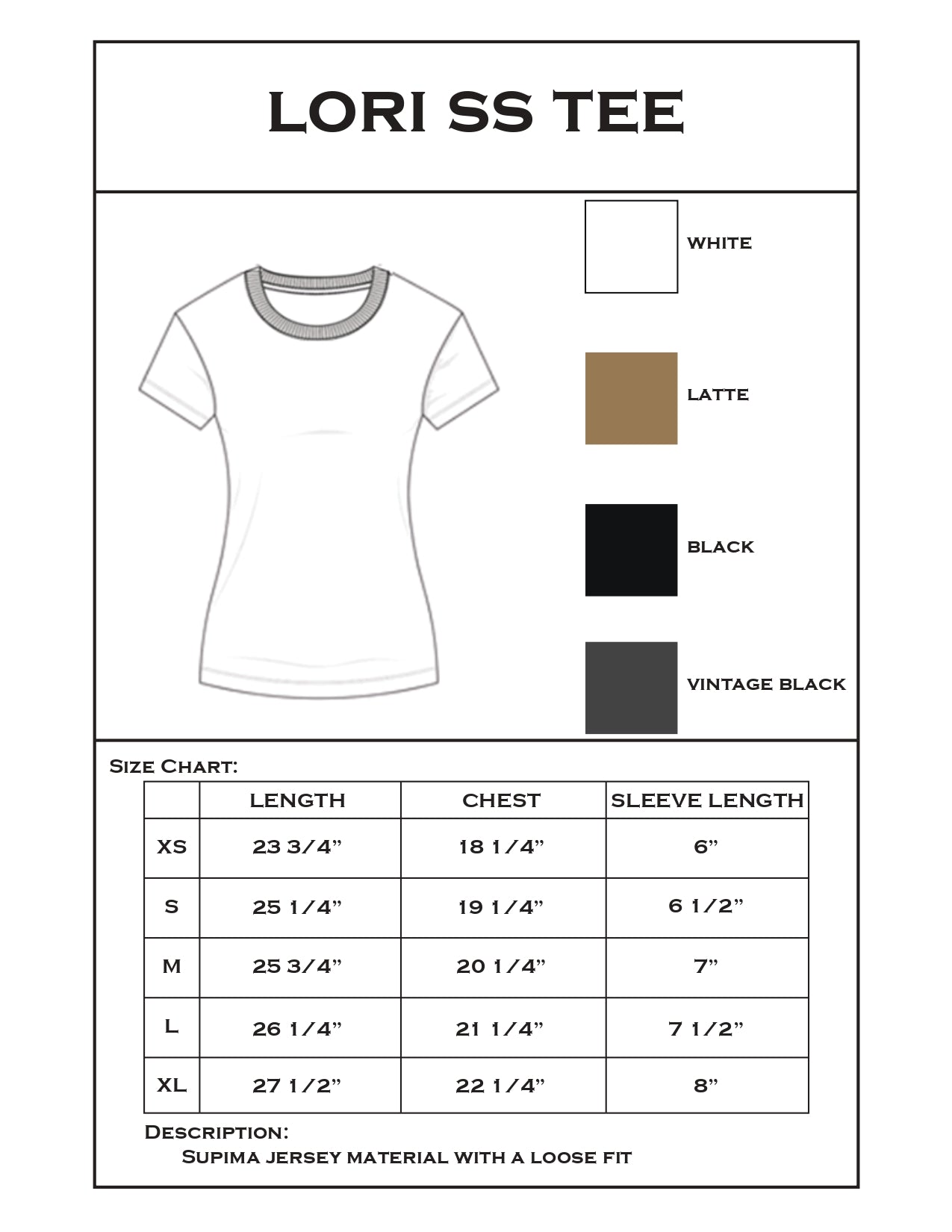 Classic women's short sleeve tee, featuring a custom Lux Supima Jersey. Silhouette hits below the waist. Designed to last wear after wear.