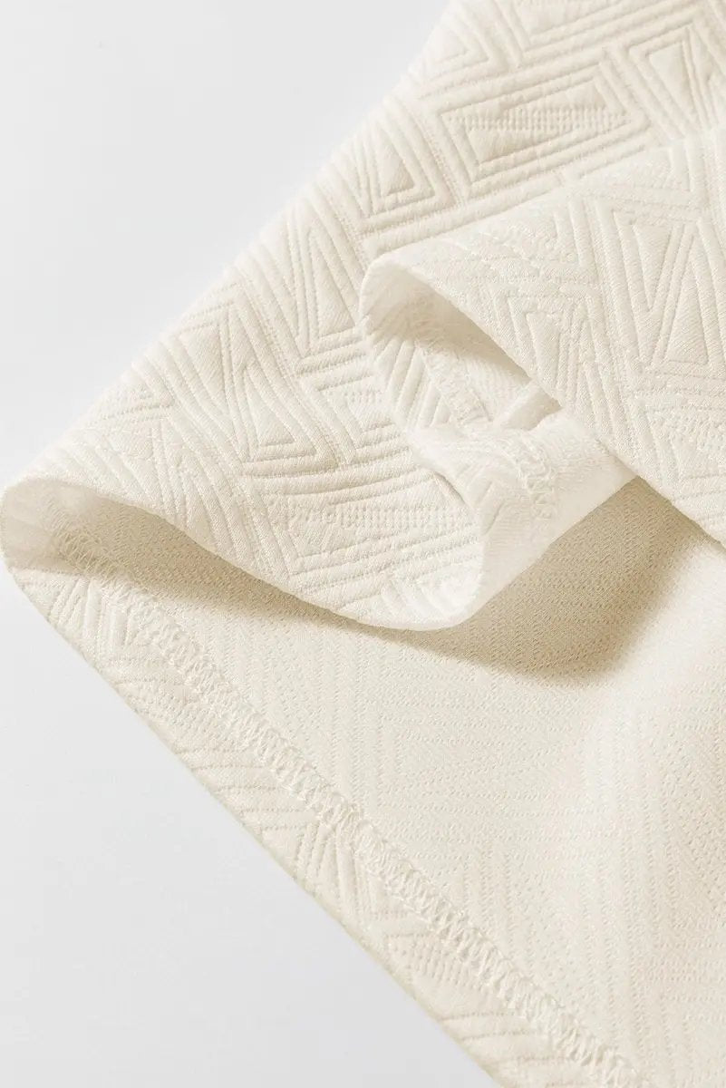Elevate your casual wardrobe with this beige top, featuring a textured fabric that adds subtle depth and a refined touch. The base color is complemented by colorblock striped trim for a preppy, contemporary look.