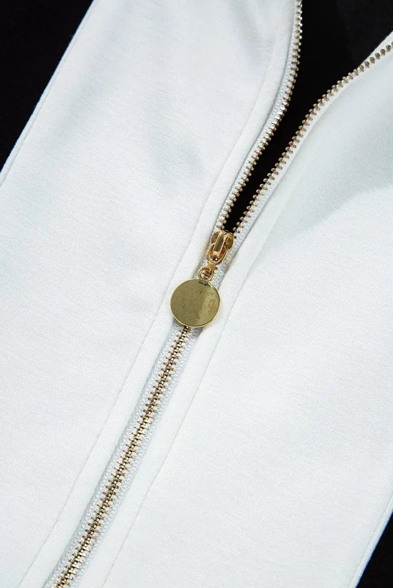 Black Contrast Collar Patchwork Zip Front Romper
