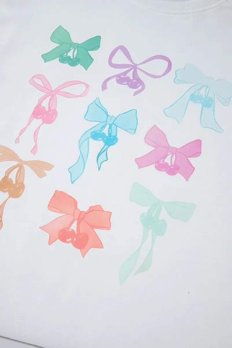 White Bowknot Pattern Drop Shoulder Loose Sweatshirt