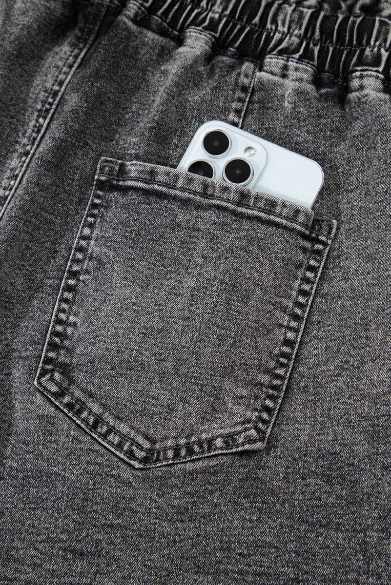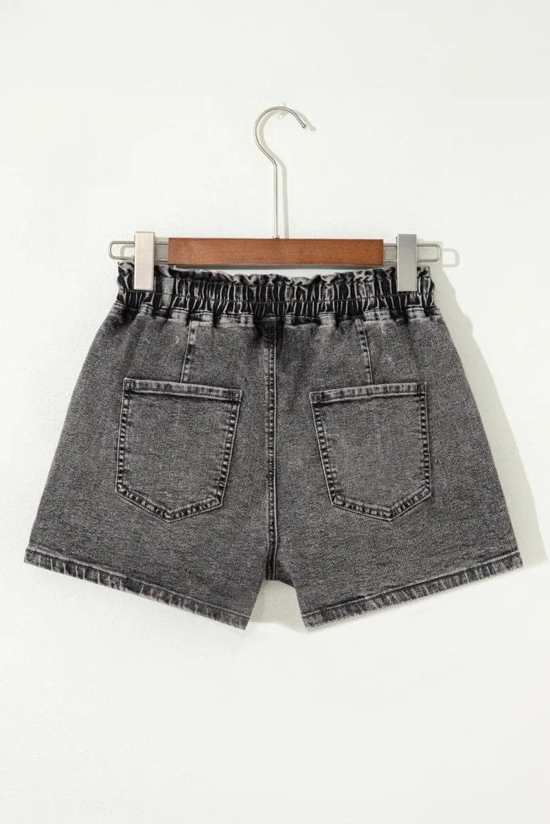 High-Rise Drawstring High Waist Casual Denim Shorts with Pockets