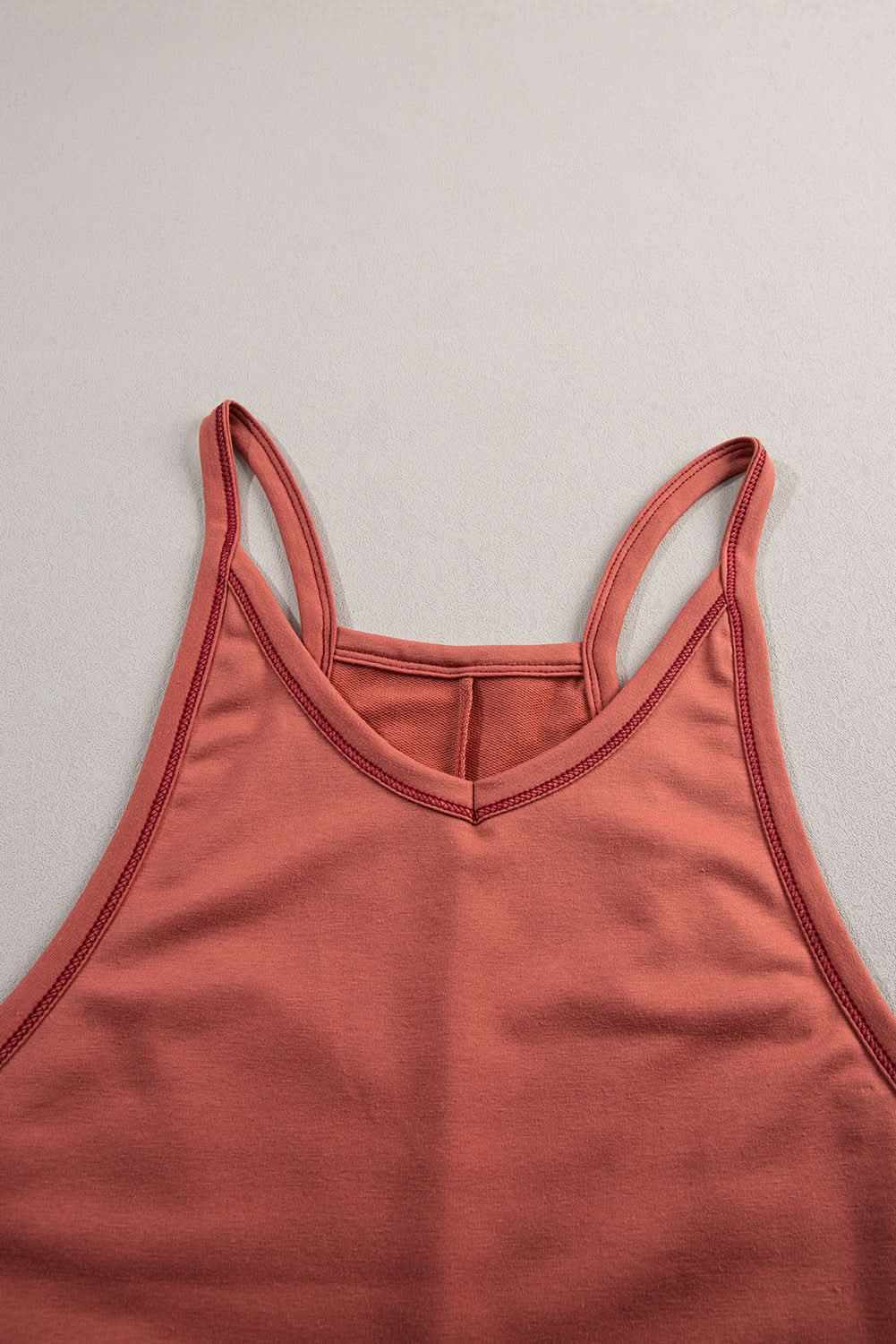 Elevate your casual wardrobe with this sleeveless jumpsuit that combines comfort and contemporary flair. The relaxed harem silhouette is enhanced by practical side pockets and a flattering V-neckline, making it suitable for everyday outings or weekend errands. The burnt terracotta tone shown pairs easily with sandals or sneakers for a polished, laid-back look.