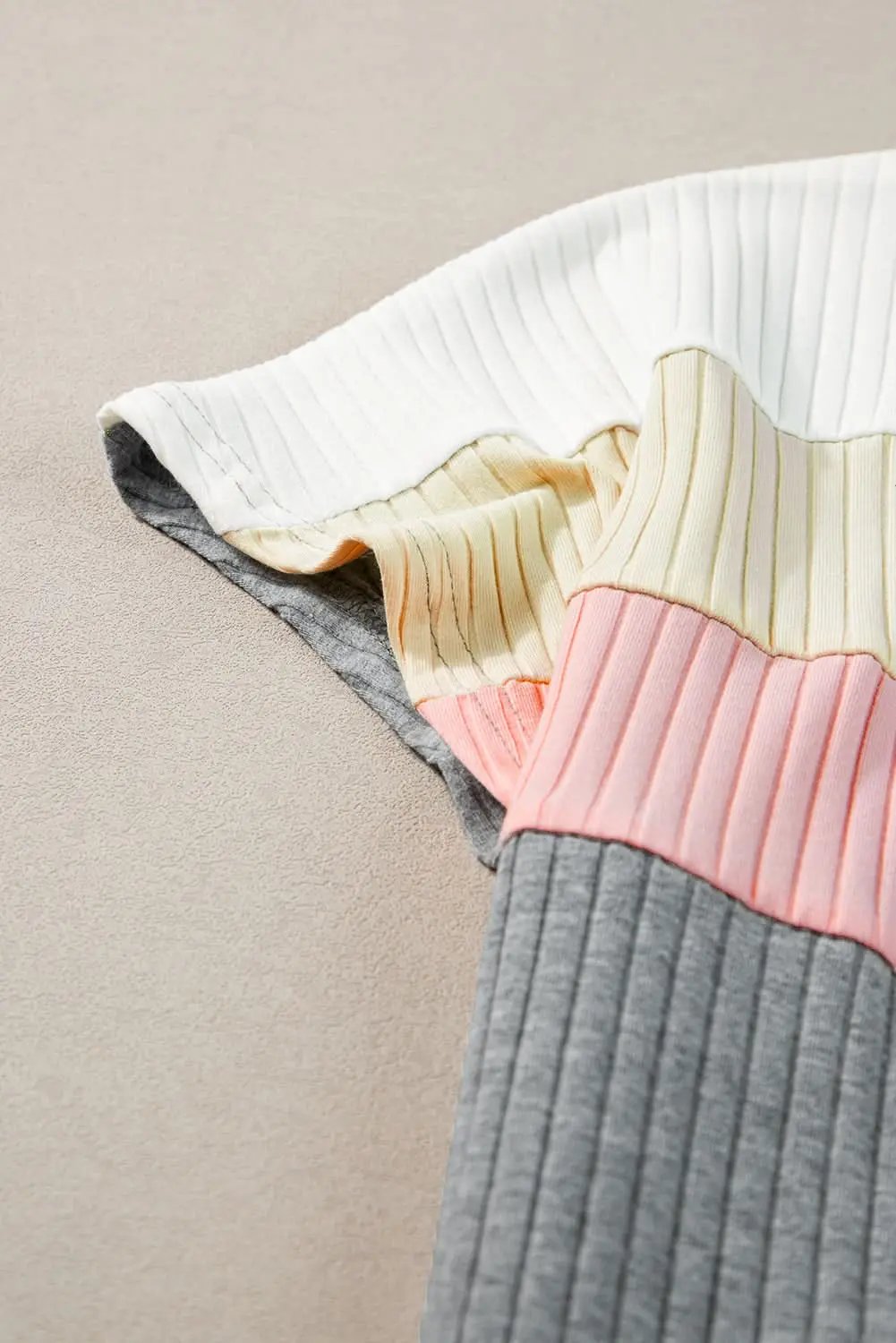 Love Salve Gray Ribbed Color Block Patchwork T-shirt