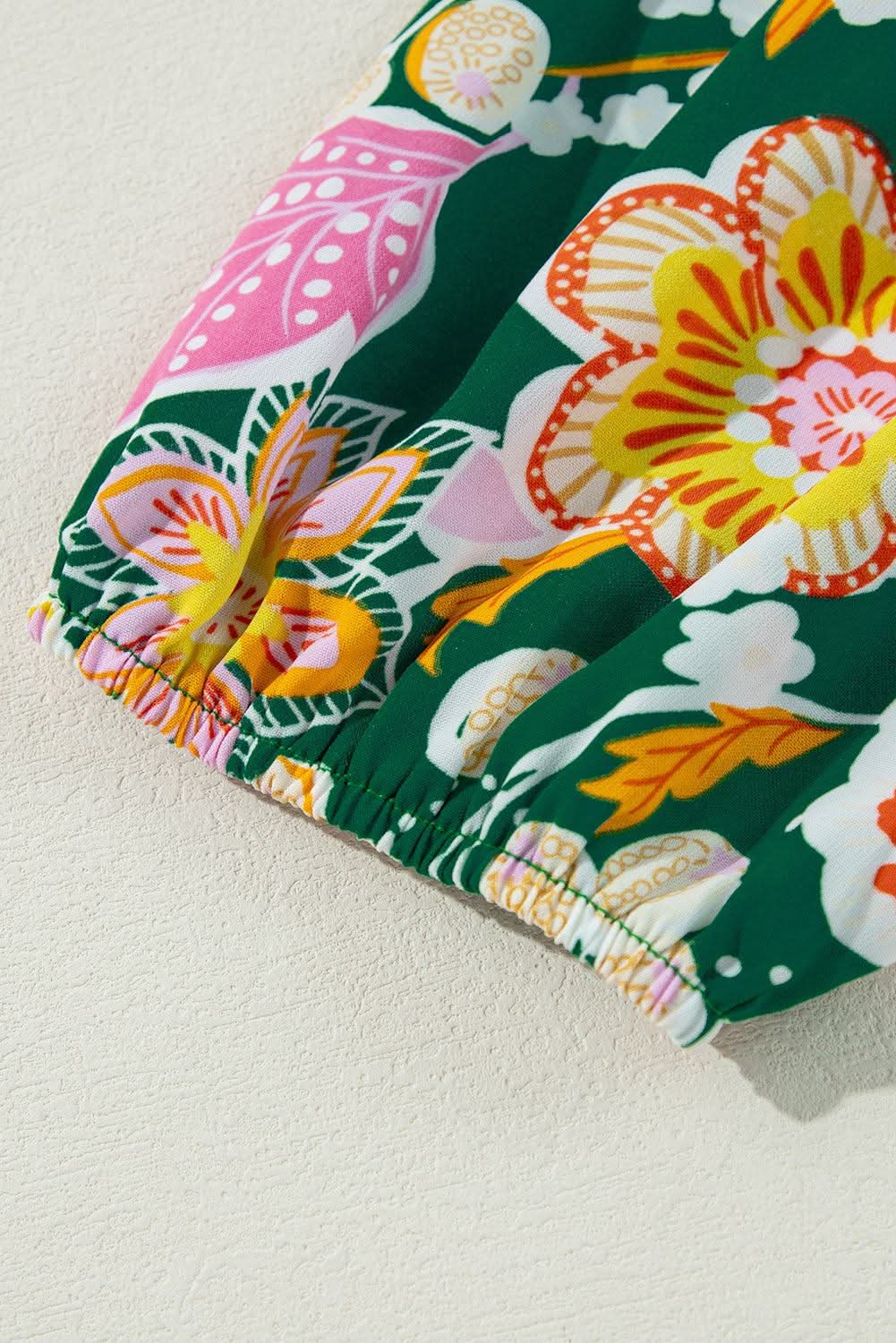 Elevate your everyday wardrobe with this Green Floral Tied V-Neck Long Sleeve Plus Size Babydoll Top. The silhouette skims over the body with a flattering babydoll cut, while the V-neck and tie draw attention to the neckline in a refined way.