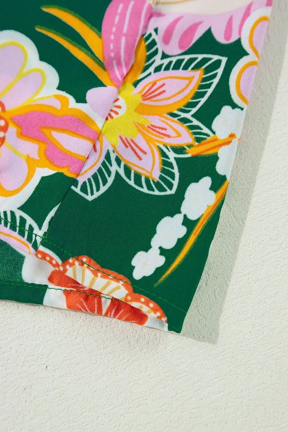 The bold floral print sits on a rich green background, offering a fresh look for any season. The long sleeves provide versatile coverage for layering or wearing solo, and the top is tailored for plus sizes to ensure a comfortable, secure fit without sacrificing style.