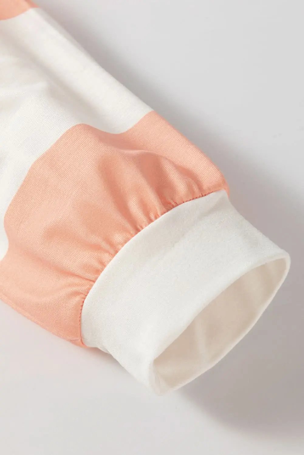 - Color/Pattern: light blue with white and peach colorblock stripes