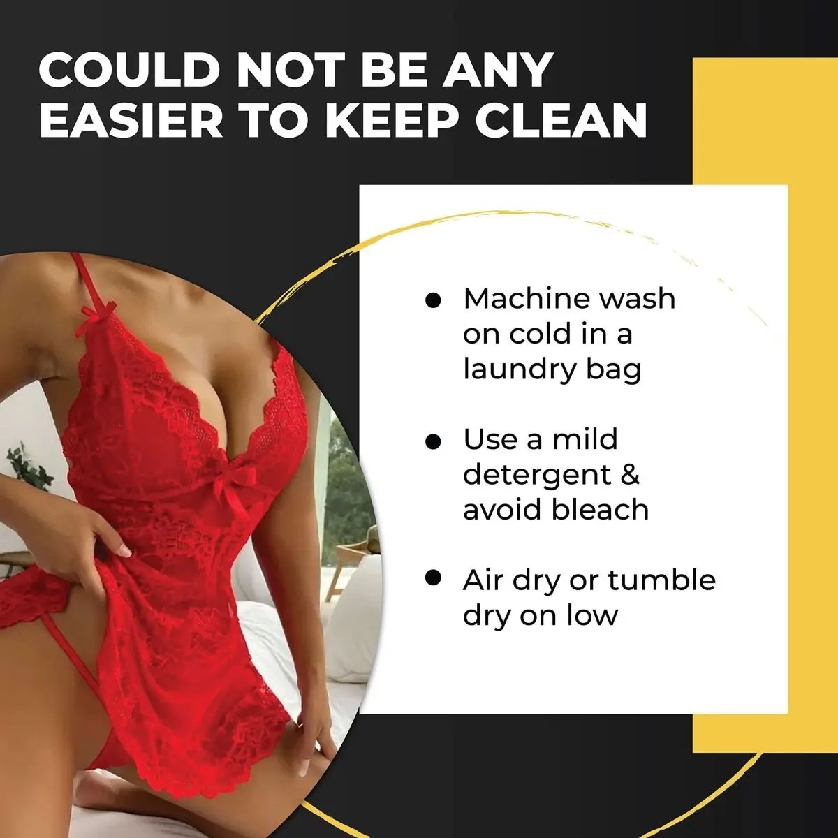 - Material: silky fabric with lace overlays for a soft, luxurious feel