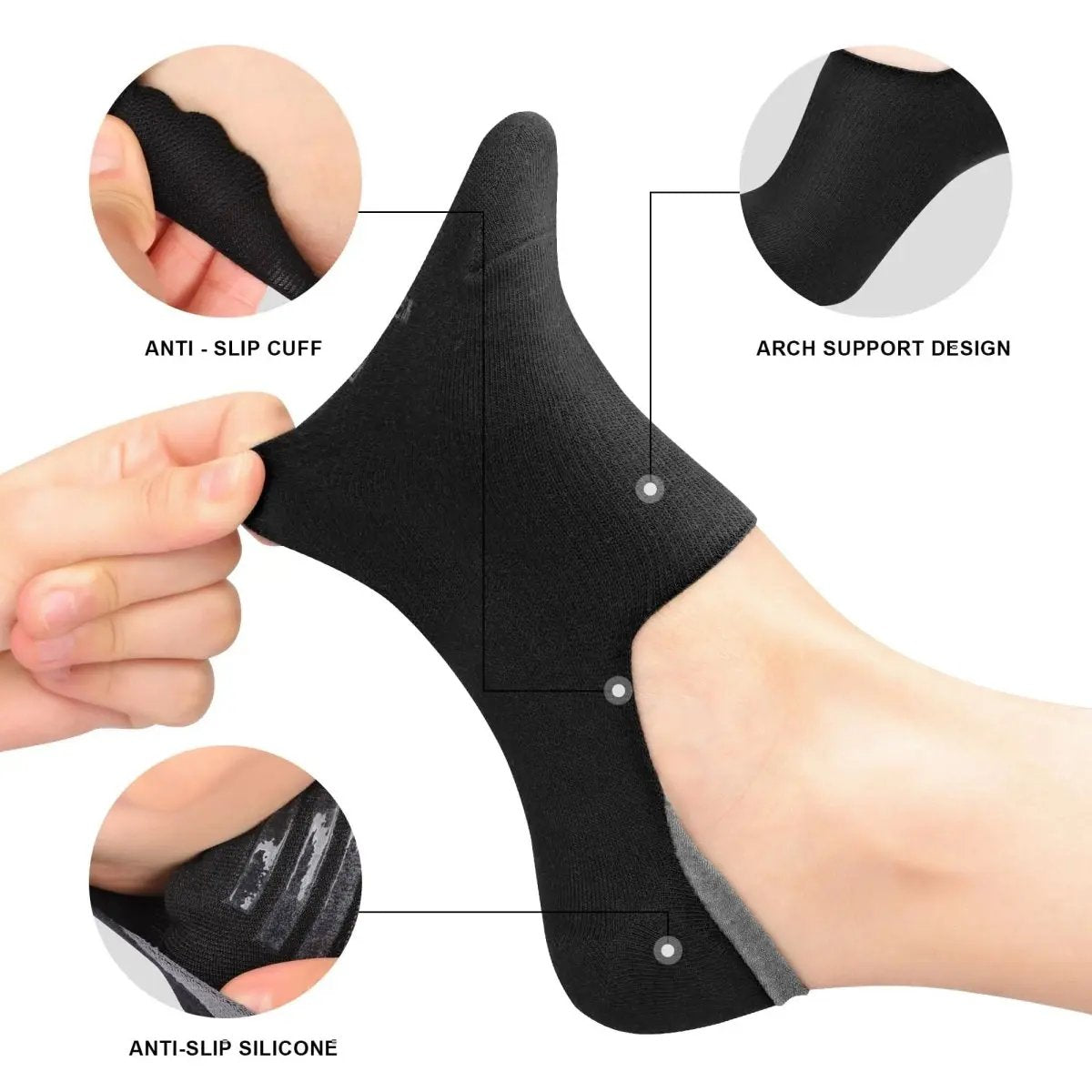 - Non-Slip Design: Silicone heel grip for secure wear