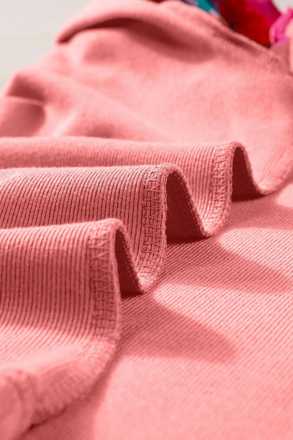 - Color: peach blossom pink with floral sleeve accents.