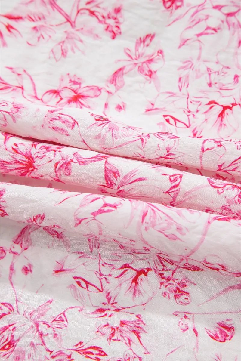 Experience effortless elegance with the Pink Floral Ruffled Short Sleeve Bow Back Square Neck Blouse. The soft pink floral print and feminine ruffle sleeves contribute a charming touch, while the square neckline and bow-back detail elevate the silhouette for summer occasions. The shift silhouette flatters all body types, offering versatile wear for both casual outings and dressier events.