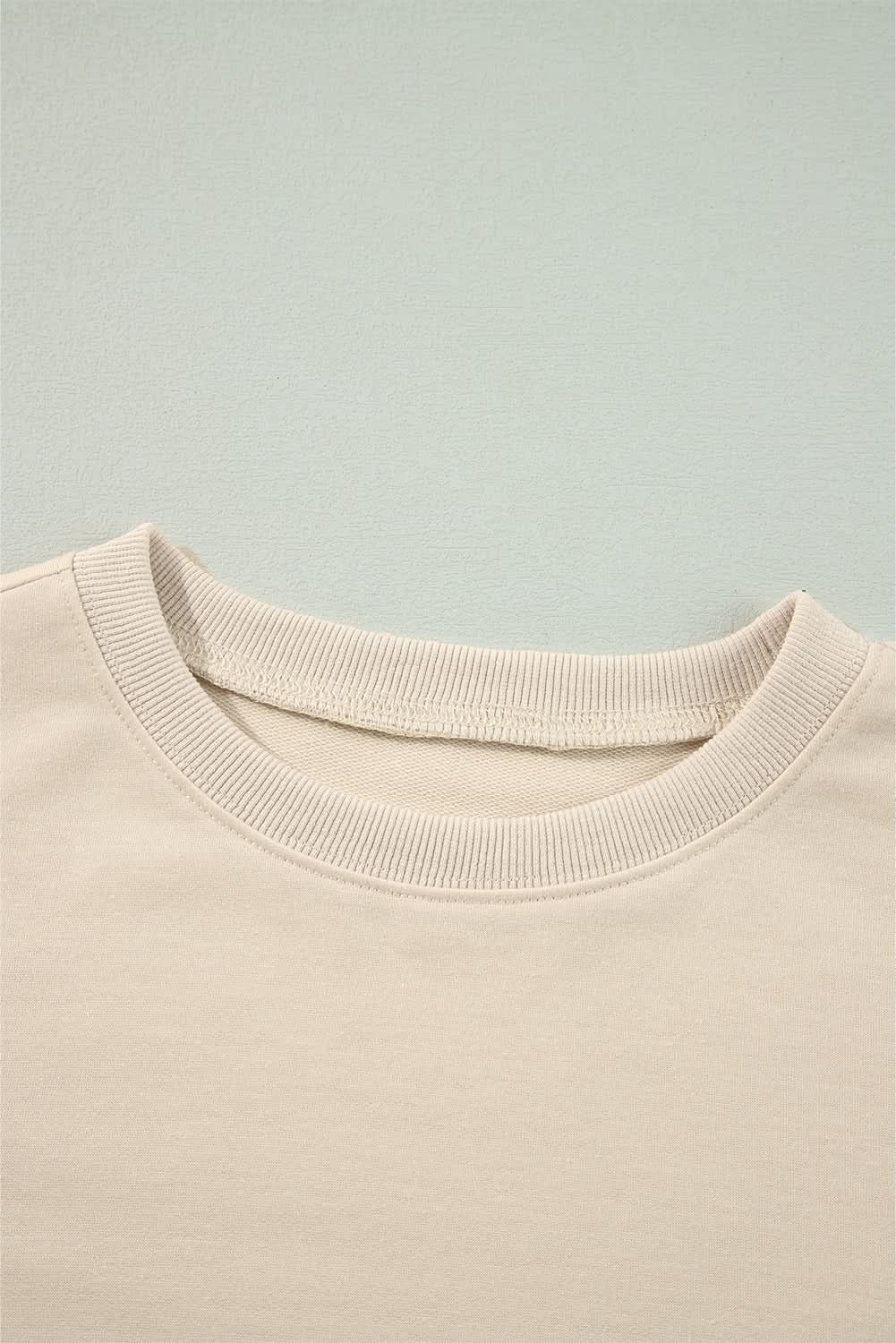 - Key details: ruffled shoulders, long sleeves, and a clean round neckline.