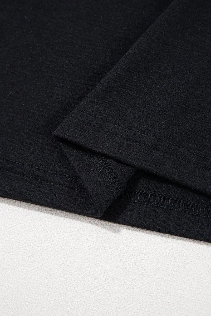 Black Sequin Stripes Patchwork Mardi Gras Crew Neck T Shirt
