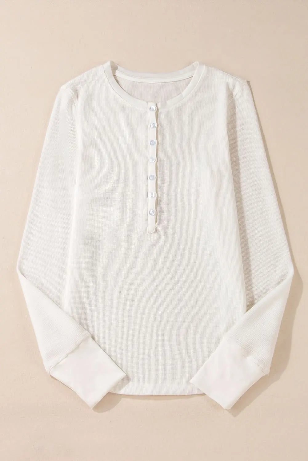 Love Salve White Solid Color Waffle Half Button Long Sleeve T
