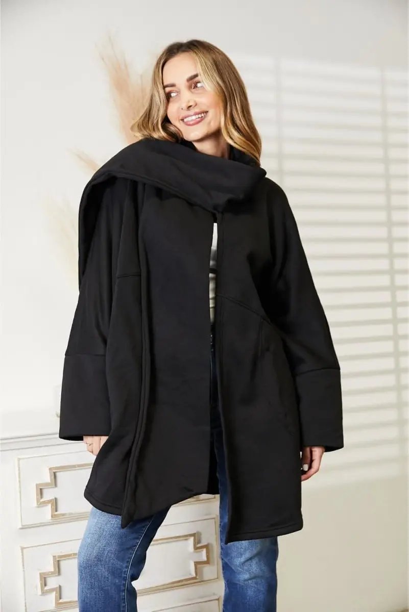 HEYSON Full Size Open Front Cardigan with Scarf Design