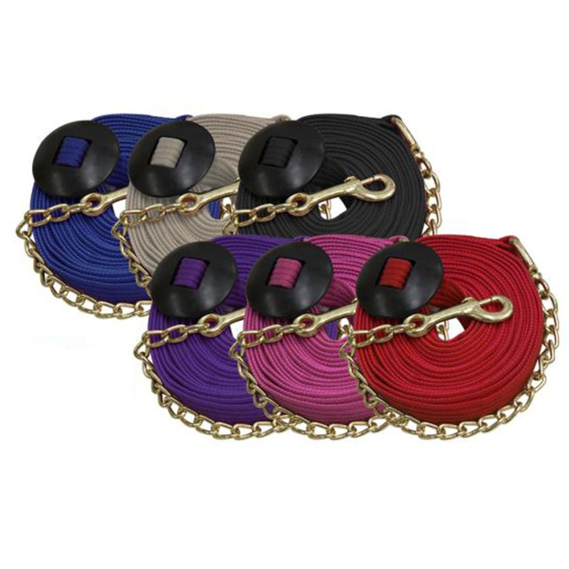 This lunge line comes complete with a durable, metal chain, perfect for use in equine training. 25' long