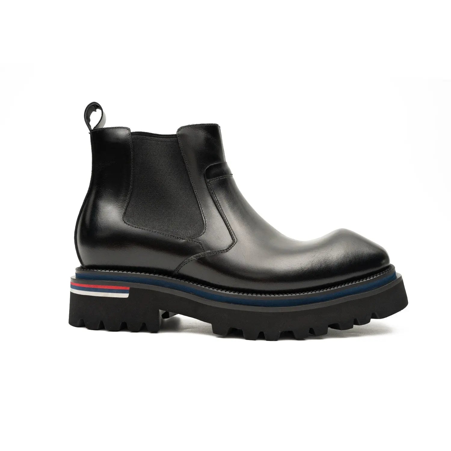 Handmade Black Leather Chelsea Boots with Chunky Sole