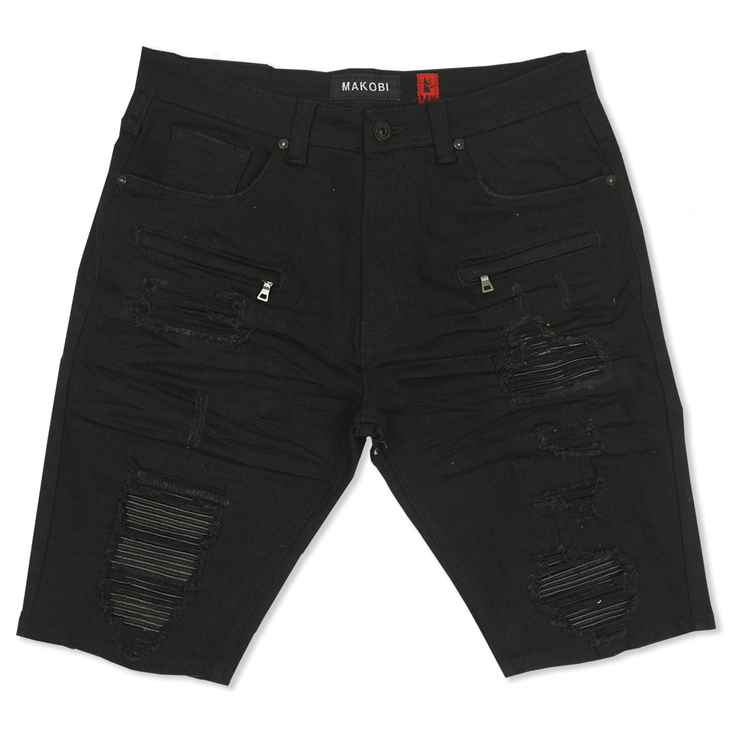 M970 Galveston Biker Shredded Shorts - Black-Black